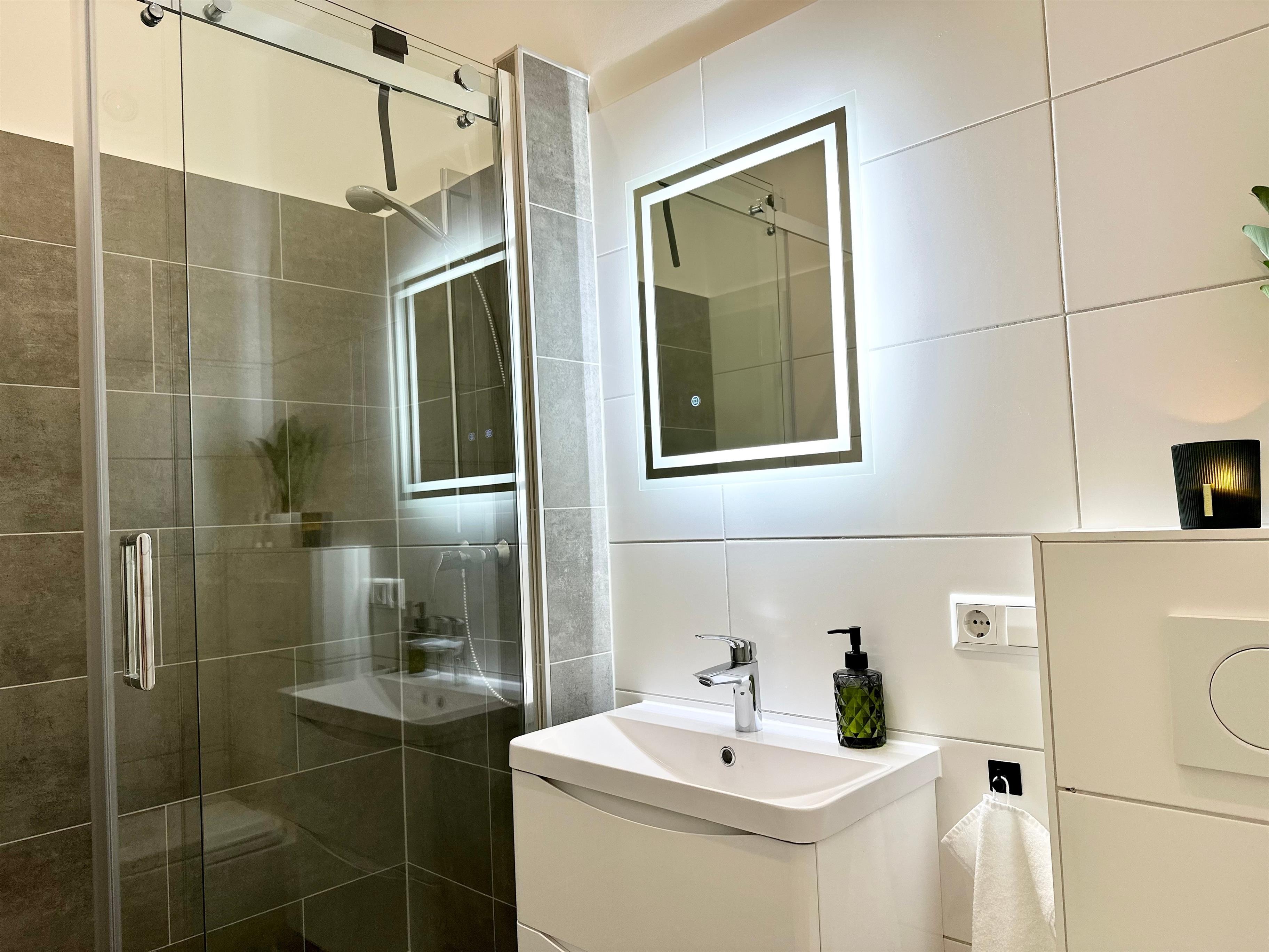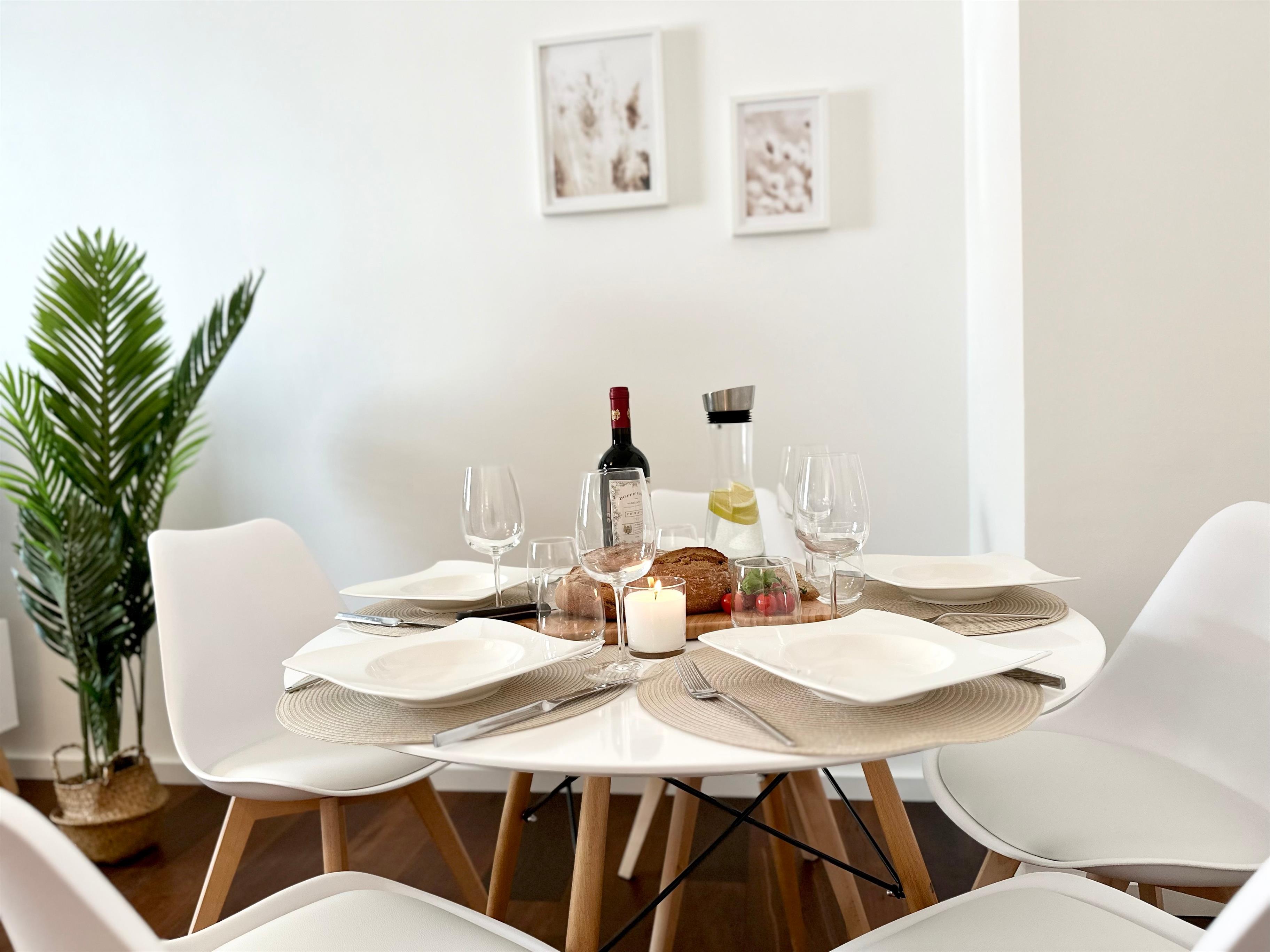 Diese moderne 75 m² große Wohnung bietet alles für einen entspannten Aufenthalt. Zentral gelegen, mit zwei Schlafzimmern, einem großzügigen Wohn-/Essbereich und einer voll ausgestatteten Küche, ist sie ideal für Paare, Familien oder Geschäftsreisende. Ein Tiefgaragenstellplatz und ein Aufzug sorgen für zusätzlichen Komfort.