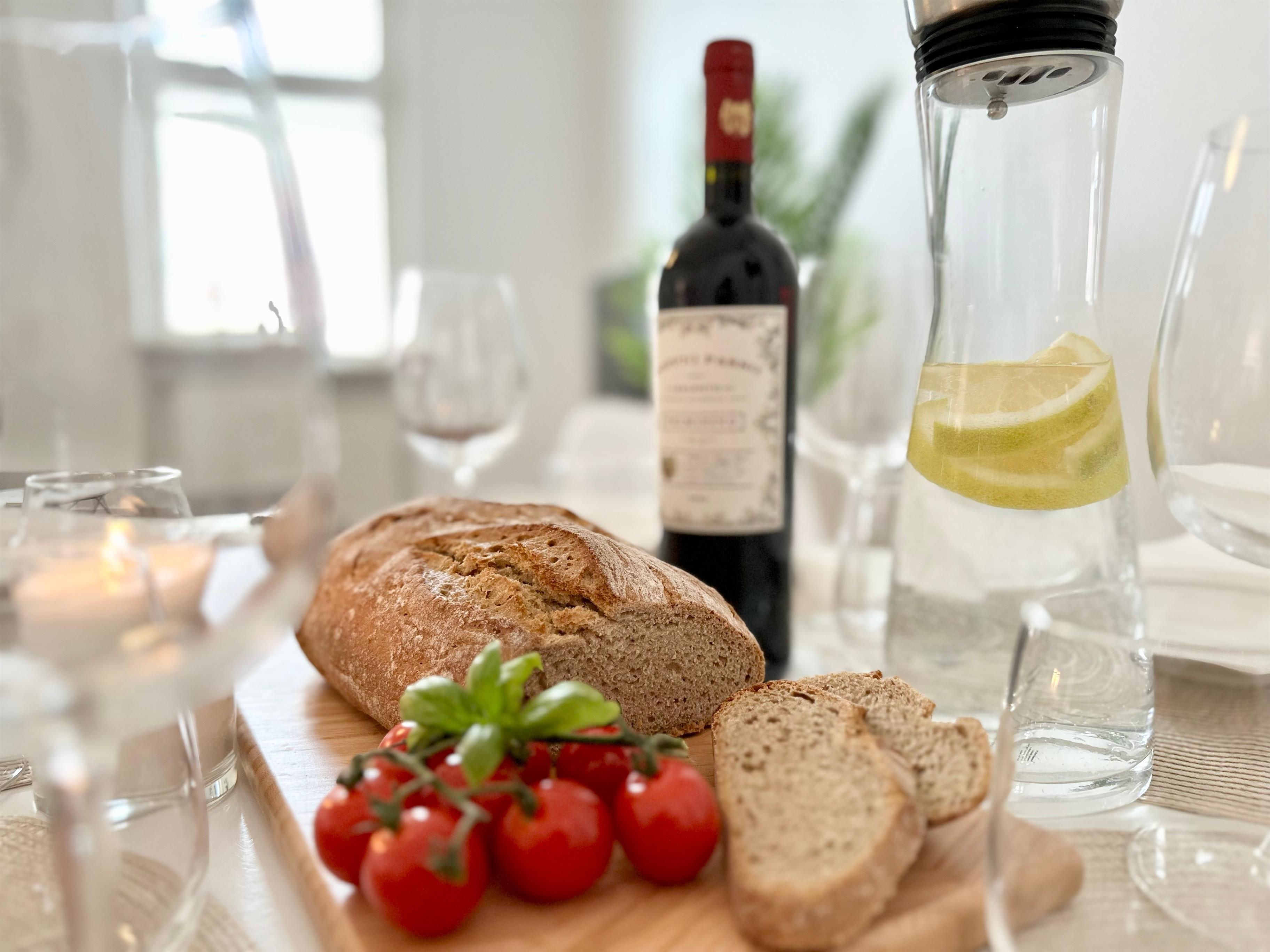- 1 geräumige Küche mit Esstisch inkl. Grundausstattung, als auch eine Grundauswahl an Gewürzen, Essig-/Öl, NESPRESSO Kaffee-Kapselmaschine.