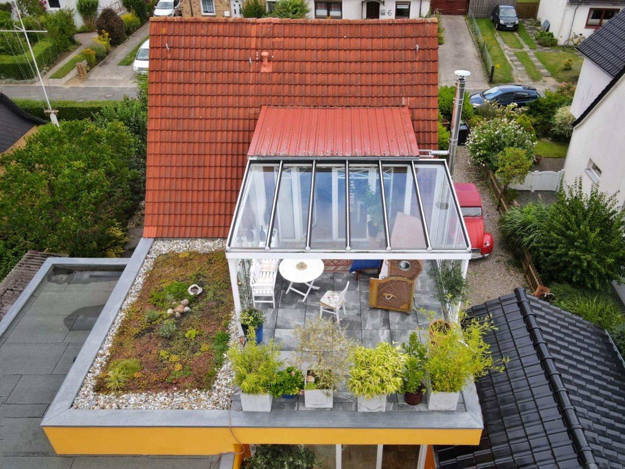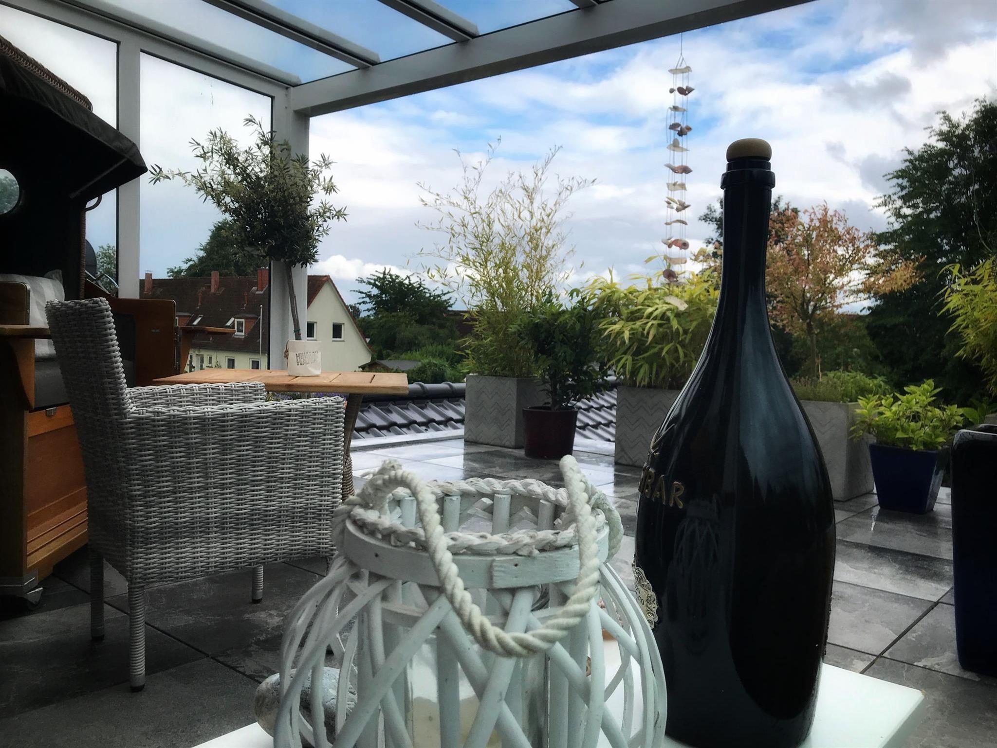 Die Ferienwohnung befindet sich im Dachgeschoss eines Einfamilienhauses und liegt in kurzer Entfernung zum Strand und Hafen. Das Appartement besticht durch den wunderschönen, 40 qm großen, Dach- und Wintergarten mit Glasschiebeelementen.