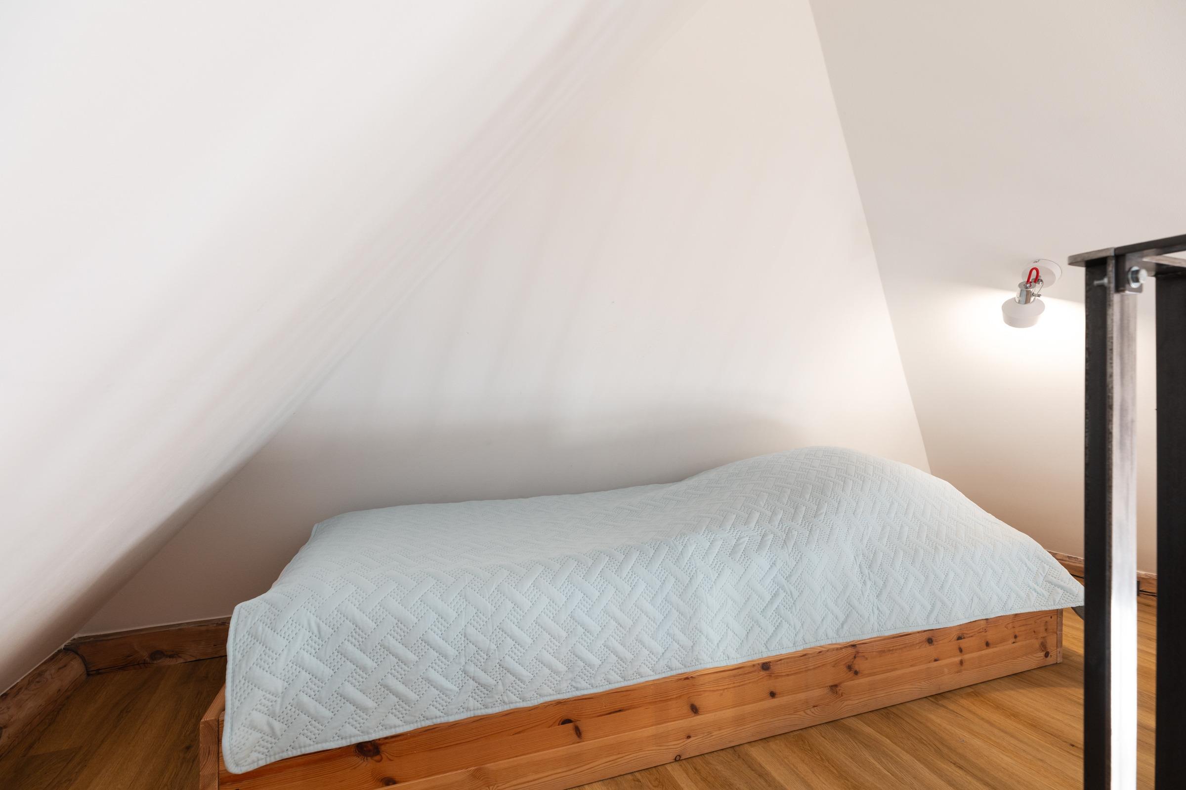 Diese charmante Wohnung eignet sich für Freunde oder Familien mit größeren Kindern, bei denen das Gemeinsame im Vordergrund steht. Herzstück des Objekts ist der großzügige Wohnbereich mit schöner Sofaecke, gemütlicher Essecke und einer gut ausgestatteten, offenen Küche. Es gibt ein separates Schlafzimmer mit 2 Einzelbetten, die sich auf Wunsch auch zu einem Doppelbett zusammenschieben lassen. Drei weitere Schlafmöglichkeiten, 1 Doppel- und 1 Einzelbett, befinden sich auf der Empore, die über eine Treppenleiter erreichbar ist. Zu beachten ist, dass das Einzelbett in der Empore nur in gebeugter Haltung zu erreichen ist. Ferner verfügt die Wohnung über ein modernes und geräumiges Badezimmer mit ebenerdiger Dusche, Fenster und Waschmaschine. Auch die Lage spricht für sich: Strand und Fähranleger, Bushaltestelle, aber auch Bäcker, Supermarkt, Drogerie und Restaurants sind fußläufig schnell erreichbar. Tolle Bedingungen also für einen tollen Urlaub im Künstler- und Fischerort Heikendorf.