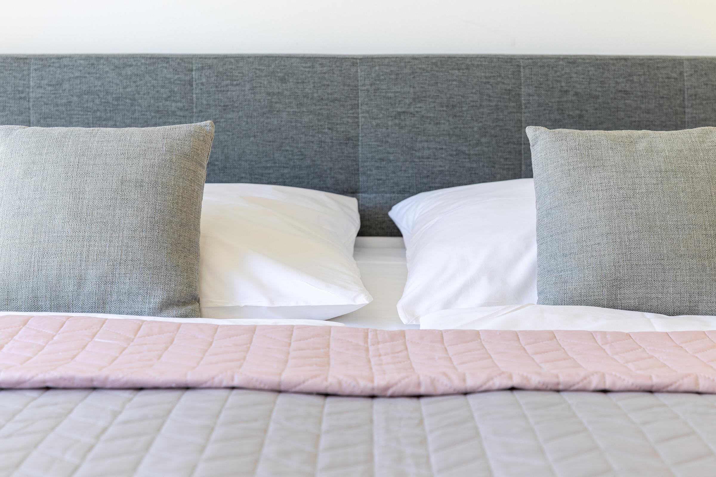 Schlafzimmer: 1 Doppelbett (2x 90x200 cm), Kleiderschrank, Verdunkelung: Gardinen, Platz für Babybett vorhanden