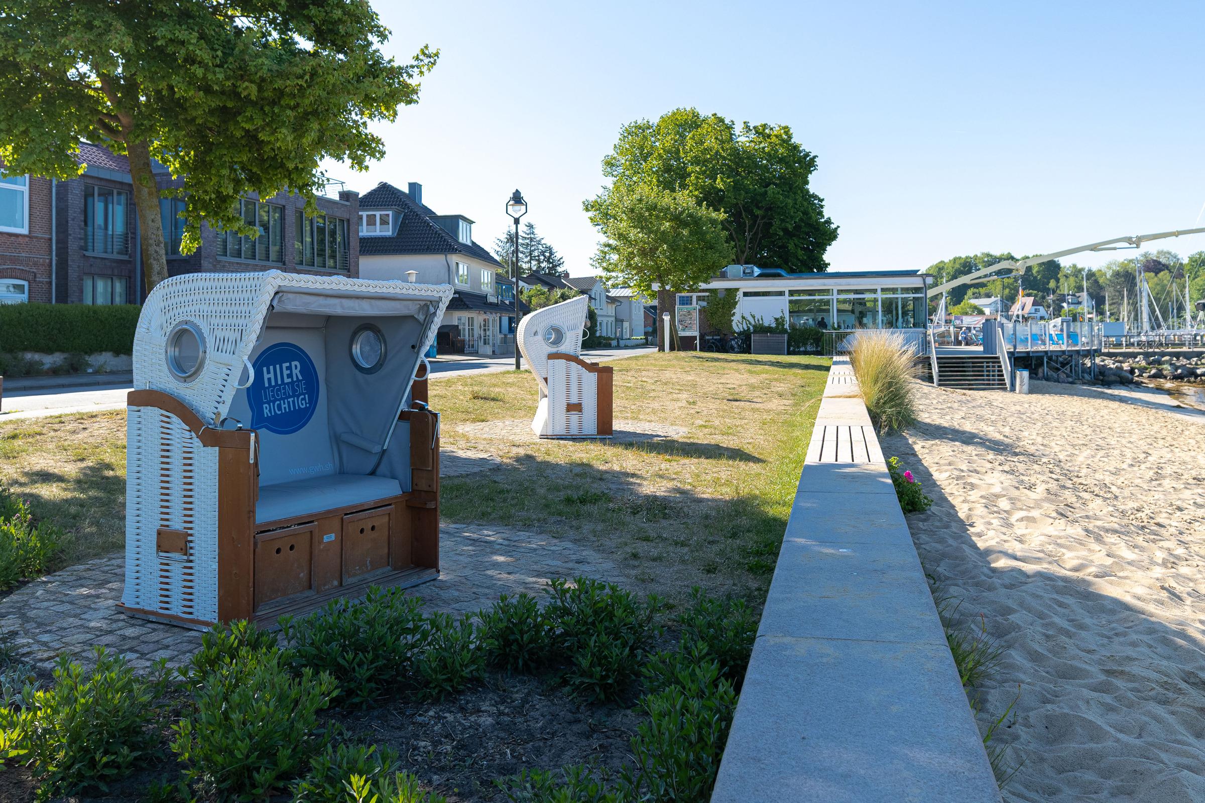 Die Schlüsselübergabe erfolgt über einen Tresor am Kraushaar Ferienwohnungen Servicebüro in der Strandstraße 10, 24235 Laboe.
