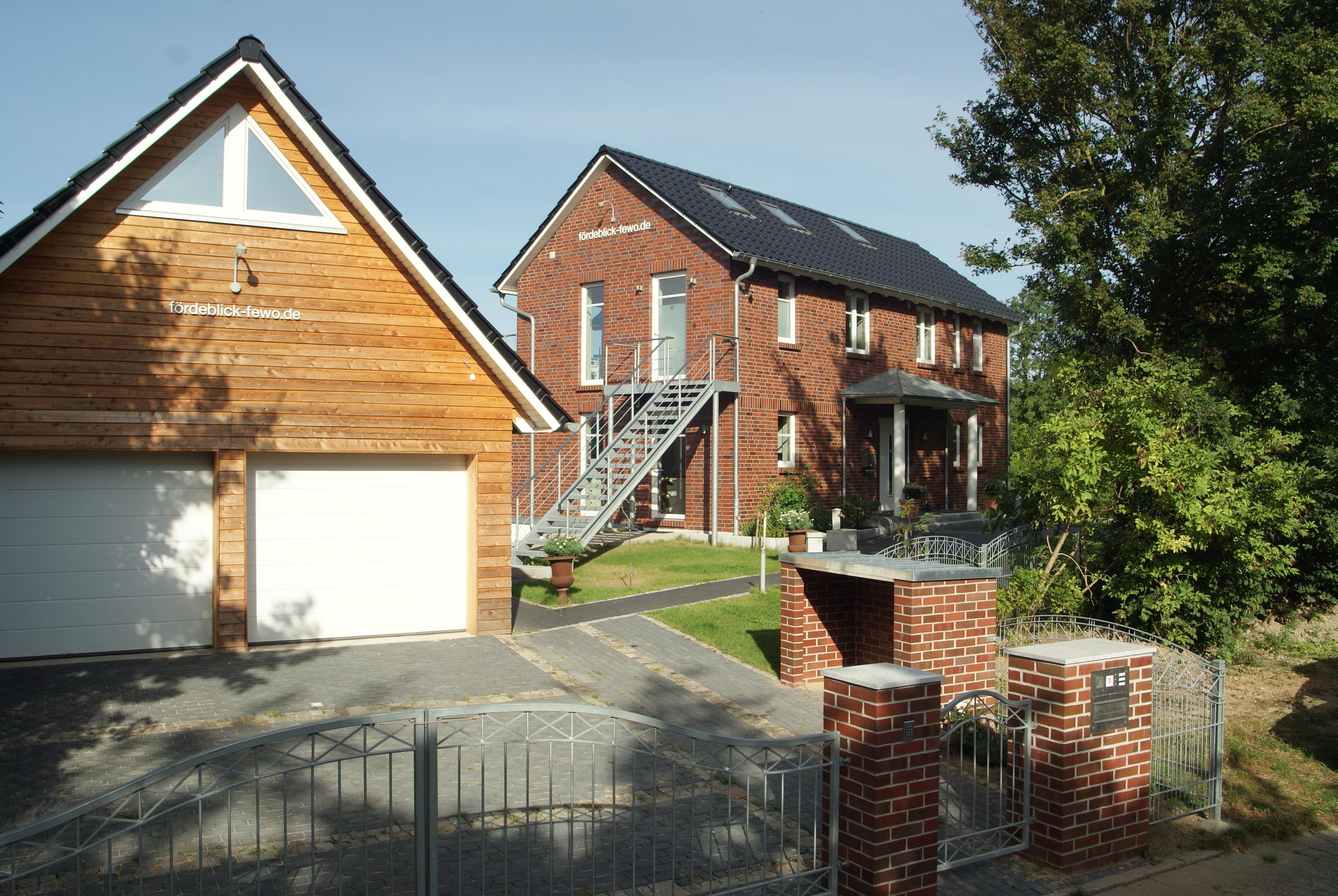 Die in 2010 erstelle Ferienwohnung erfüllt höchste Ansprüche: nur 20 m von der Wasserlinie entfernt und nur durch einen ruhigen Fußweg vom Ufer entfernt, bietet die Wohnung unverbaubaren Fördeblick mit großer Dachterrasse.