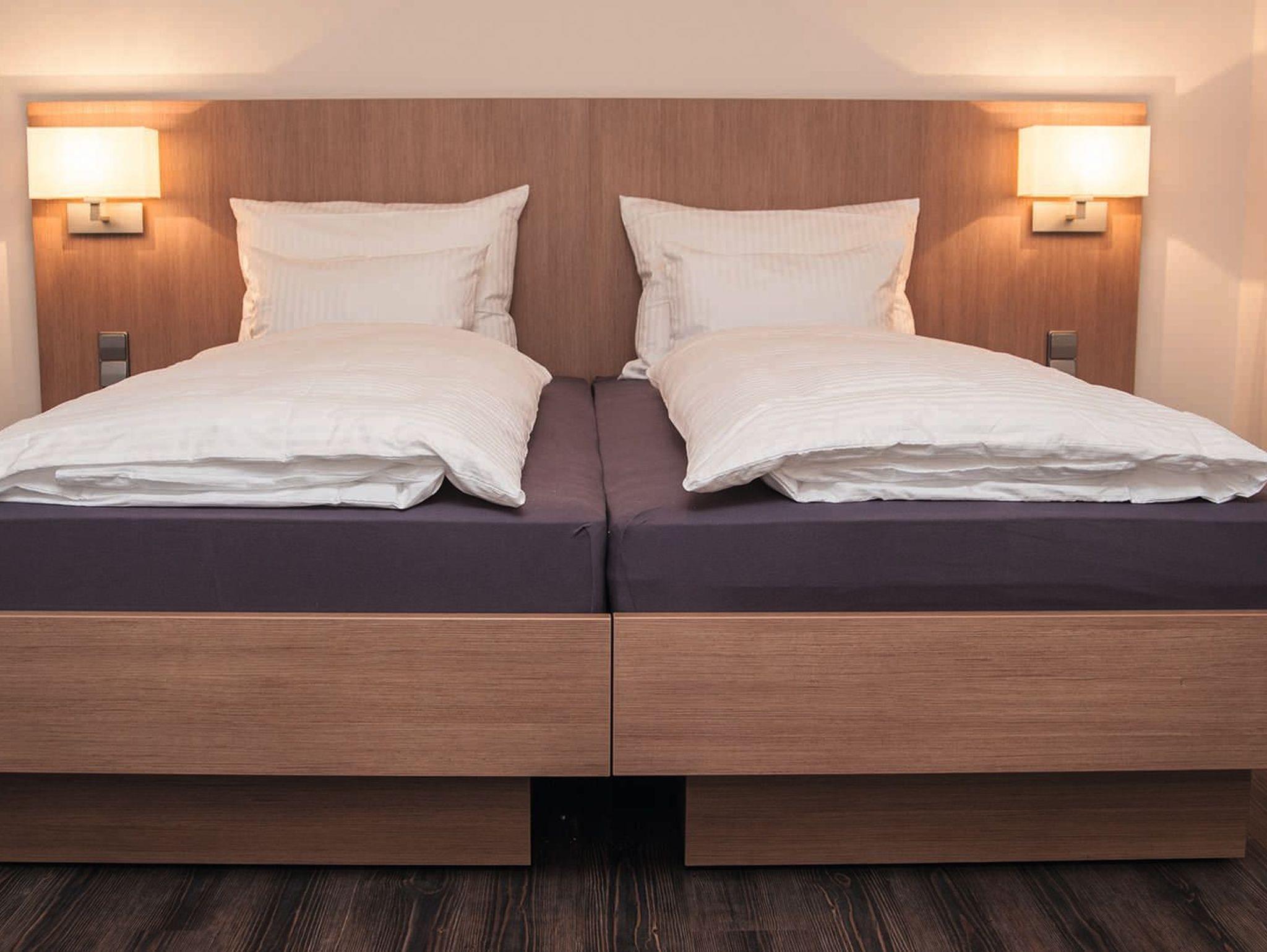 Die großzügigen, modern eingerichteten Gästezimmer sind mit einem geräumigen Bad ausgestattet. Es gibt insgesamt 16 Doppelzimmer (Einzelbelegung möglich), von denen die Hälfte als Dreibettzimmer buchbar sind.