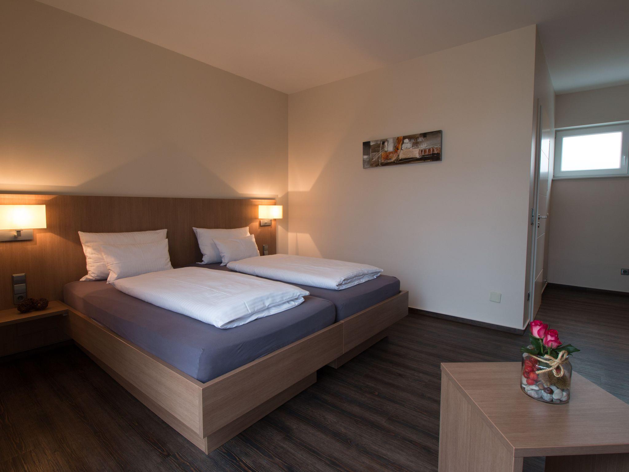 Die großzügigen, modern eingerichteten Gästezimmer sind mit einem geräumigen Bad ausgestattet. Es gibt insgesamt 16 Doppelzimmer (Einzelbelegung möglich), von denen die Hälfte als Dreibettzimmer buchbar sind.