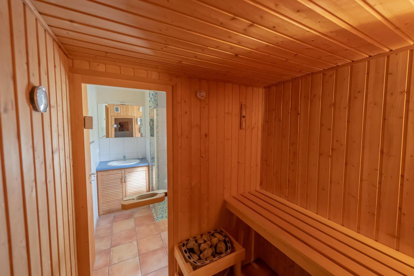 Besondere Erholung bietet dir die hauseigene Sauna im Erdgeschoss des Ferienhauses (Gebühr 1,00 € für 0,5 h Laufzeit). Für die notwendige Erfrischung ist eine Dusche vorhanden.