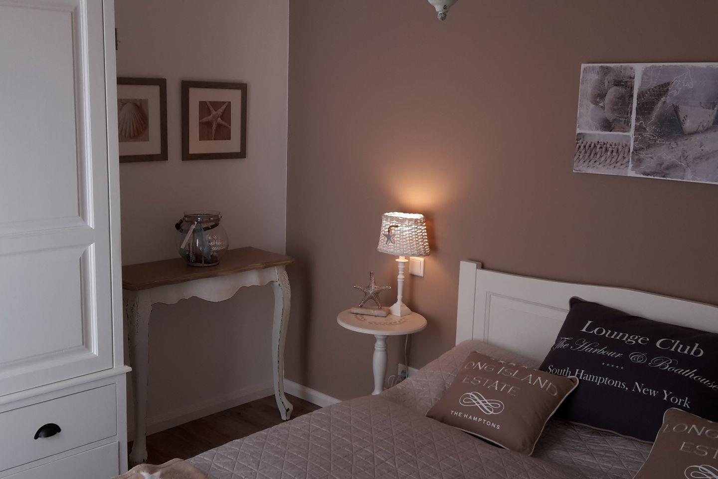 Im Schlafzimmer lädt Sie ein komfortables Doppelbett (2 x 80 x 200 cm) zum erholsamen Schlaf ein. Auch auf einen Fernseher müssen Sie hier nicht verzichten. Der große Kleiderschrank bietet viel Stauraum für Ihre Sachen. Die Schlafcouch im Wohnbereich der Ferienwohnung wird im Handumdrehen zu einem behaglichen Schlafplatz für eine Person.