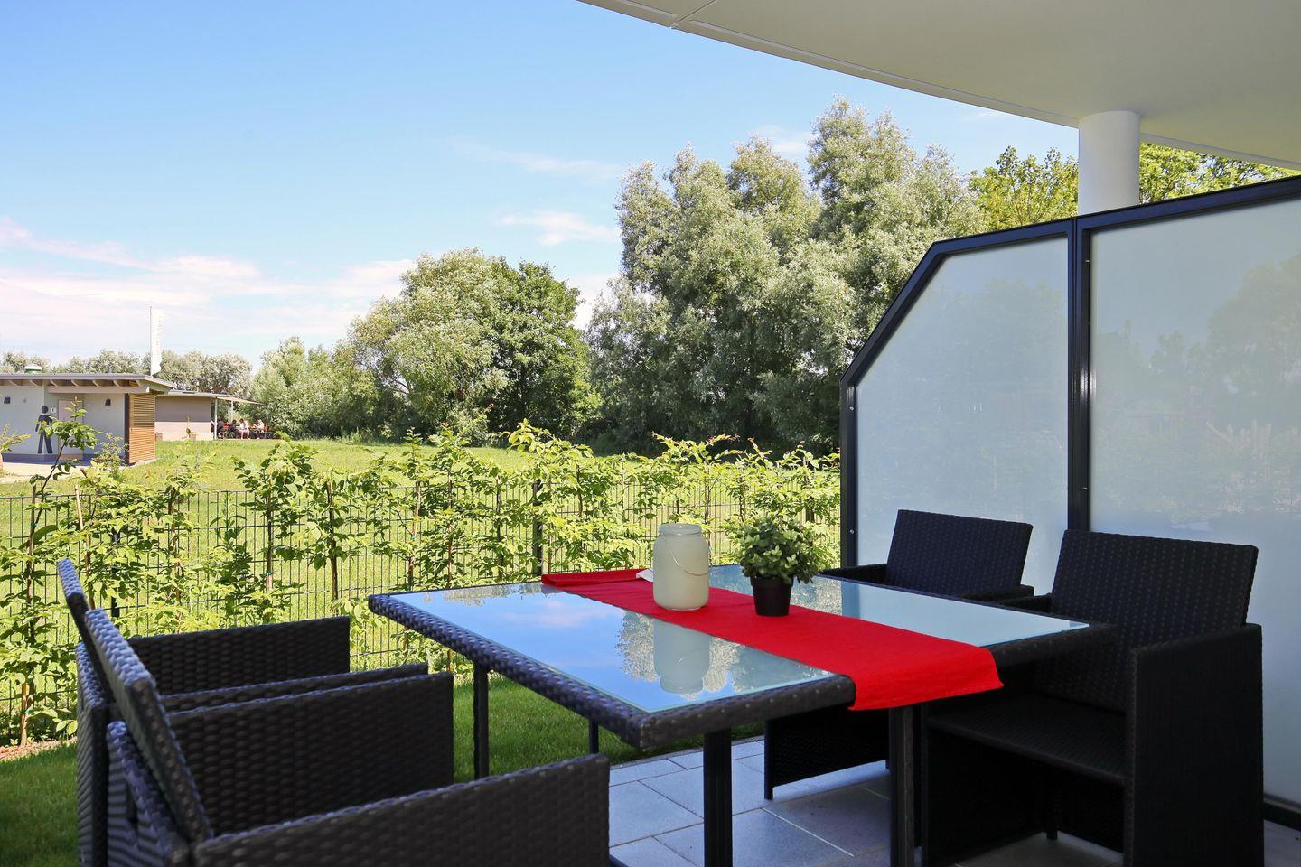 Die 61 m² große 2-Zimmer-Wohnung befindet sich im Erdgeschoss des Hauses. Die möblierte Nord-Terrasse lädt zu erholsamen Stunden im Freien ein. Die Ferienwohnung bietet mit einem Wohn- und Essbereich, einer Küchenzeile, einem Schlafzimmer und einem Wannenbad bis zu 4 Personen Platz für einen schönen Ostseeurlaub. Bis zum Strand sind es nur circa 50 Meter.