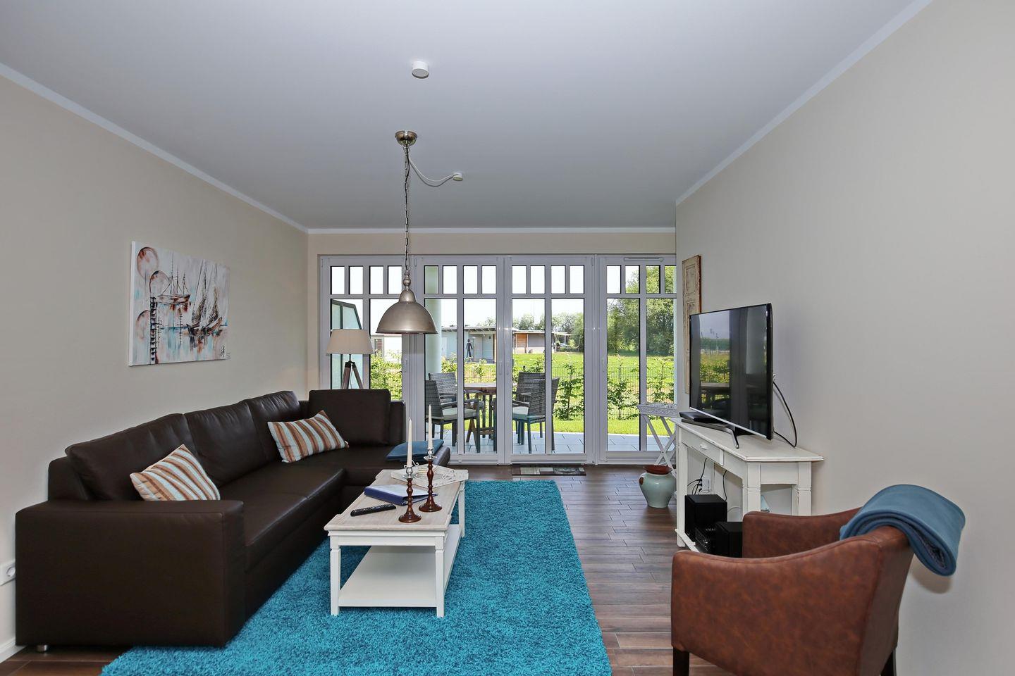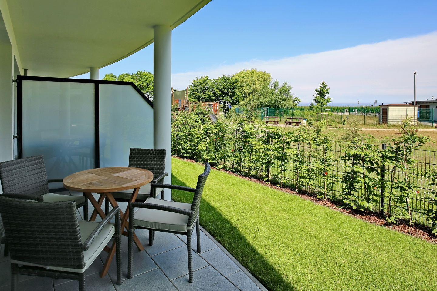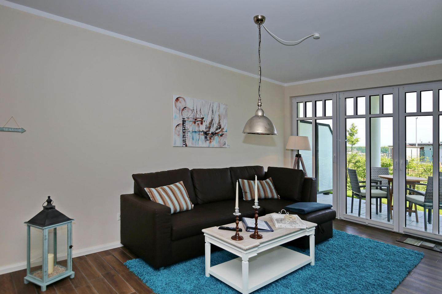 Die 66 m² große 2-Zimmer-Wohnung befindet sich im Erdgeschoss des Hauses. Erleben Sie entspannte Stunden auf der möblierten Nord-Terrasse. Die Ferienwohnung gliedert sich in einen Wohn- und Essbereich, eine Küchenzeile, ein Schlafzimmer sowie ein Duschbad und bietet bis zu 4 Personen Platz für einen erholsamen Urlaub an der Ostsee. Bis zum Strand sind es nur circa 50 Meter.