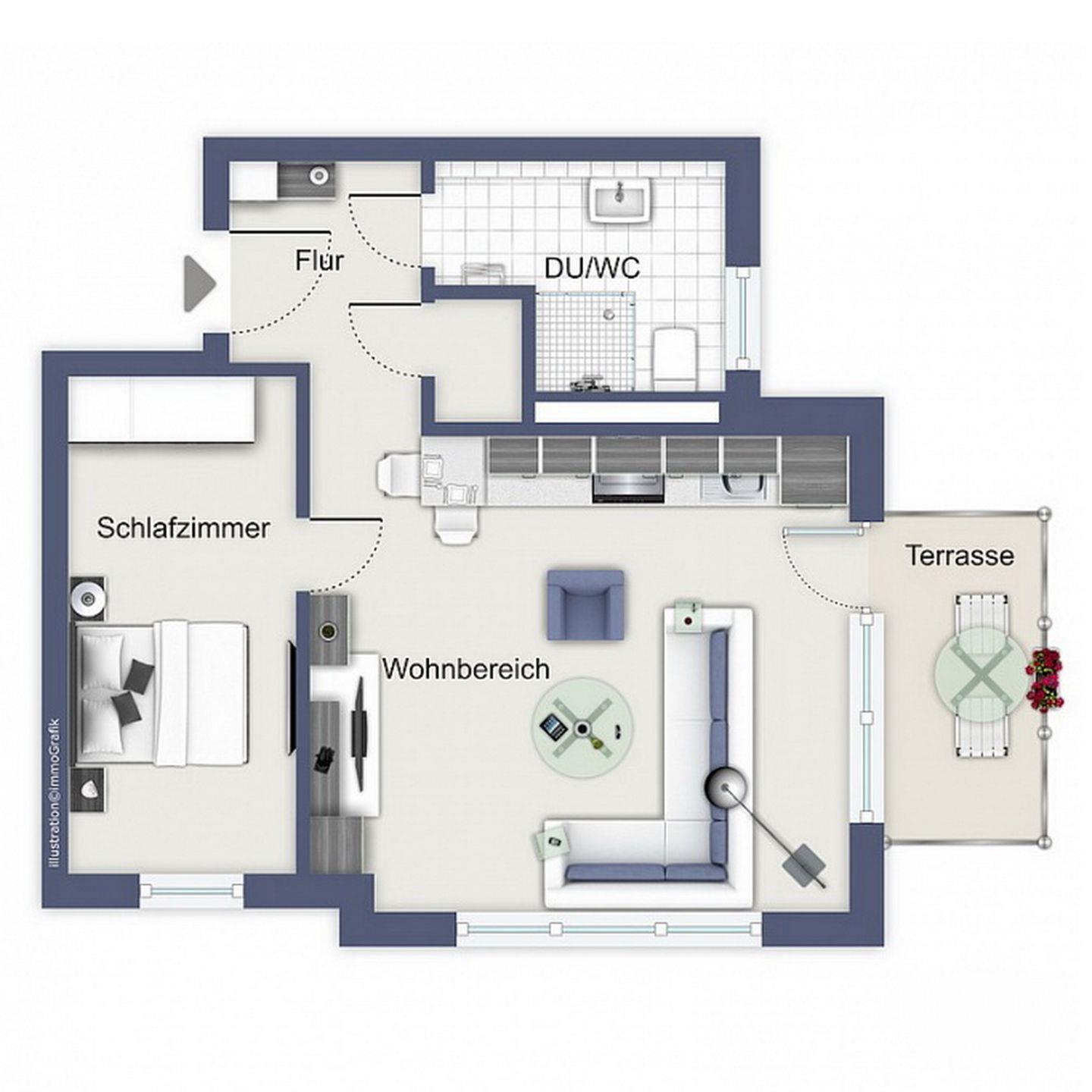 Die 45 m² große 2-Zimmer-Ferienwohnung befindet sich im Erdgeschoss des Hauses. Genießen Sie die Sonnenstunden auf der möblierten Süd-Ost Terrasse. Die Ferienwohnung bietet mit einem Wohn- und Essbereich, einer Küchenzeile, einem Schlafzimmer und einem Duschbad bis zu 3 Personen Platz für schöne Urlaubstage an der Ostsee. Bis zum Strand sind es nur circa 50 Meter.