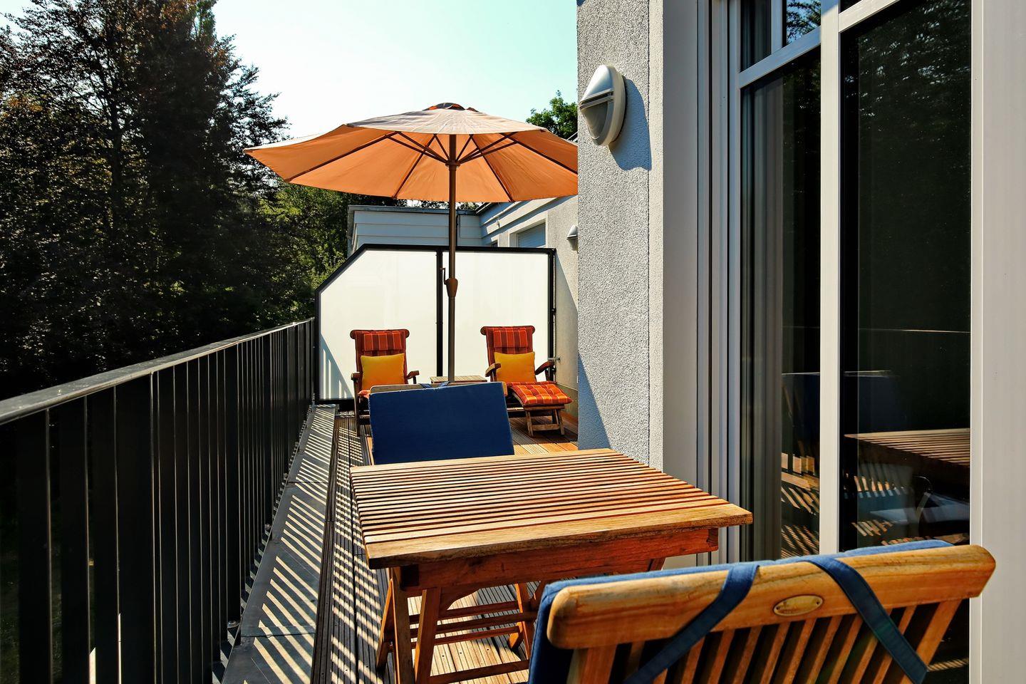 Die Ferienwohnung 39 im Linden-Palais in Heiligendamm ist eine 45 m² große 2-Zimmer-Wohnung für bis zu 2 Erwachsene mit Dachterrasse. Zum Haus gehören zwei Fahrstühle.
