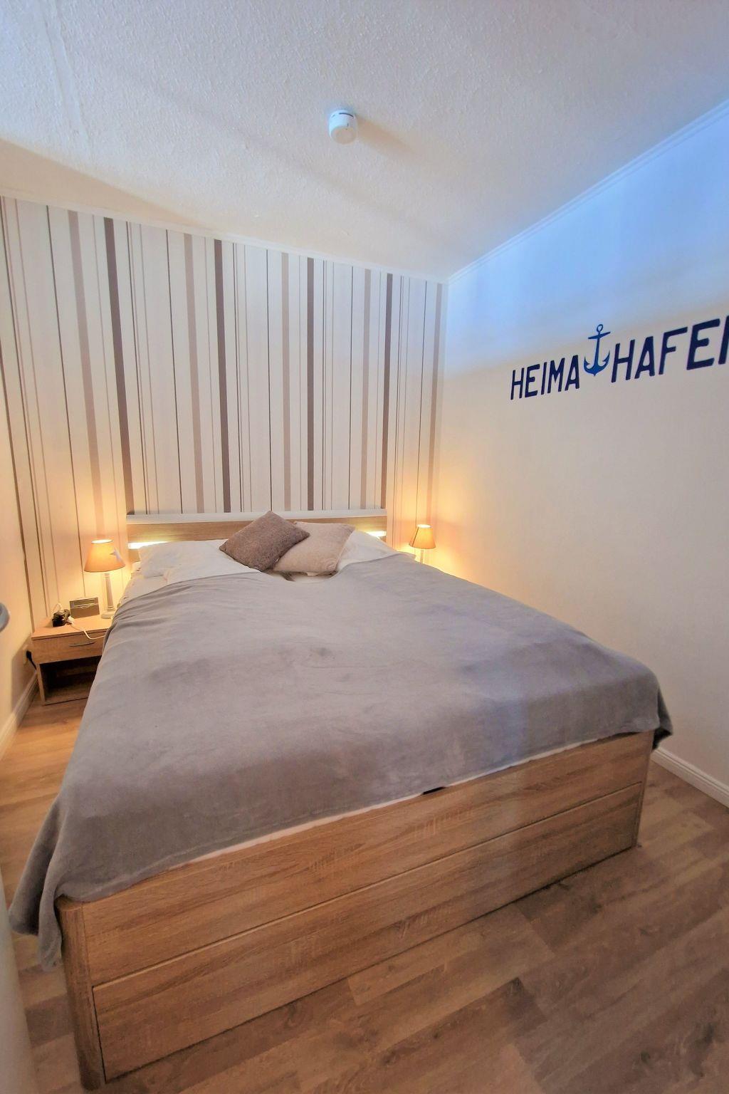 The separate bedroom can be reached from the hallway and is furnished with a double bed 160x200 cm with open foot end, 2 bedside cabinets with lamps, chest of drawers. Blackout facility