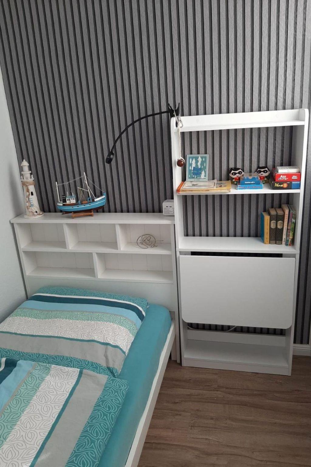 Sep. room off the living room has a window, 1 single bed 90x200 cm and shelf with desk area, blackout option.