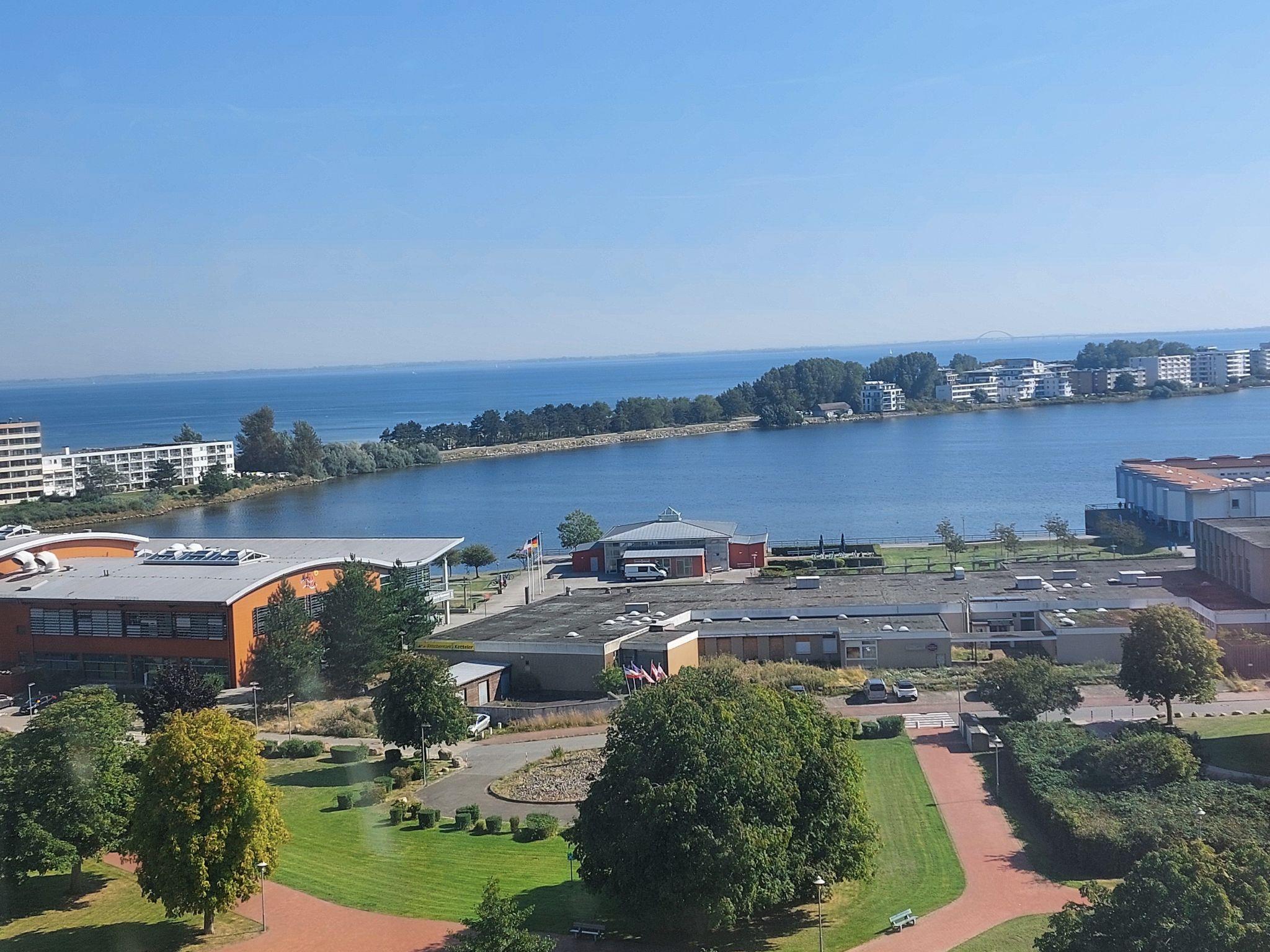 Apartment Sonnenaufgang: for 1-maximum 3 persons, 45 sqm in the Ferienpark Heiligenhafen is located on the 11th floor with lift, furnished, covered balcony to the south-east side with a fantastic view of the lake/yacht harbour and the Baltic Sea!!!