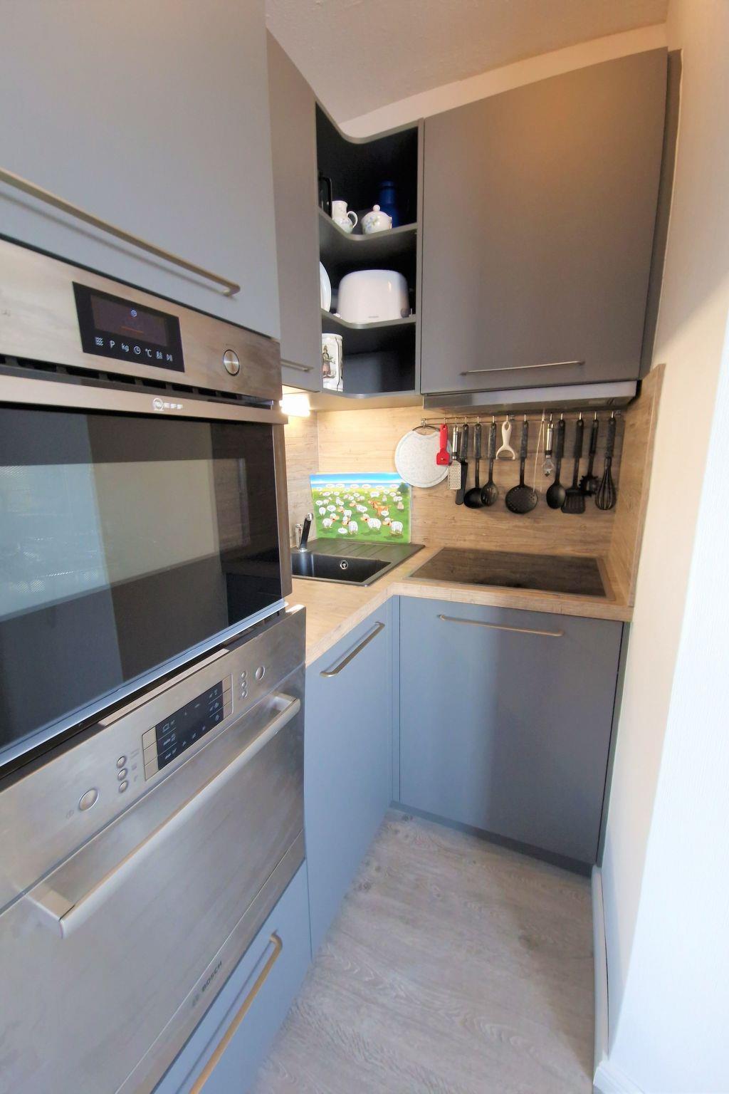 Newly renovated fitted kitchen consisting of: Wall shelf, fridge with small freezer compartment, oven, microwave, ceramic hob 4 plates, dishwasher, sink, teapot,