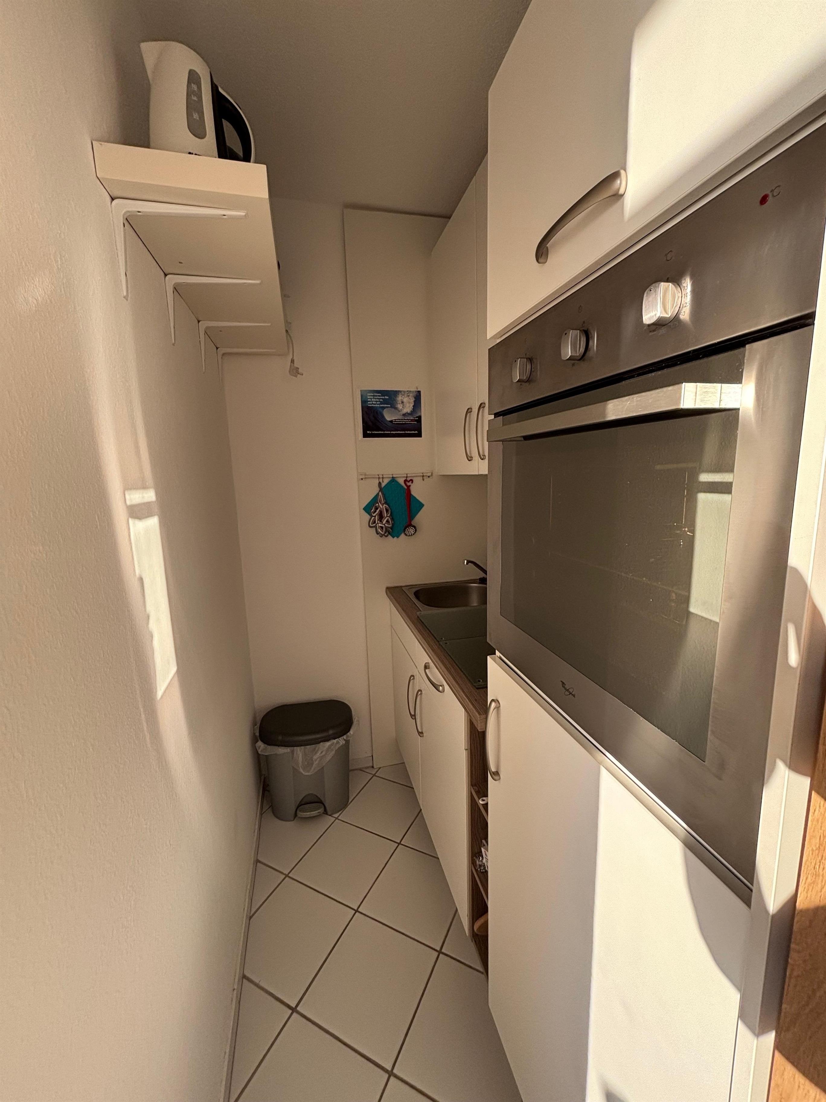 Die gemütliche Nichtraucher-Ferienwohnung verfügt über einen Balkon. Das Wohnzimmer, mit Balkon zur Seeseite, ist mit einer Sitzgarnitur, einem separaten Essplatz und SAT-TV ausgestattet. Das Wohn-Schlafzimmer ist mit einem Doppelbett versehen und im extra Kinderzimmer befindet sich ein Etagenbett. Die Küche ist vollständig ausgestattet, inklusive eines 4-Platten-Cerankochfelds, Backofen, Kaffeemaschine, Wasserkocher und weiteren Kleingeräten.