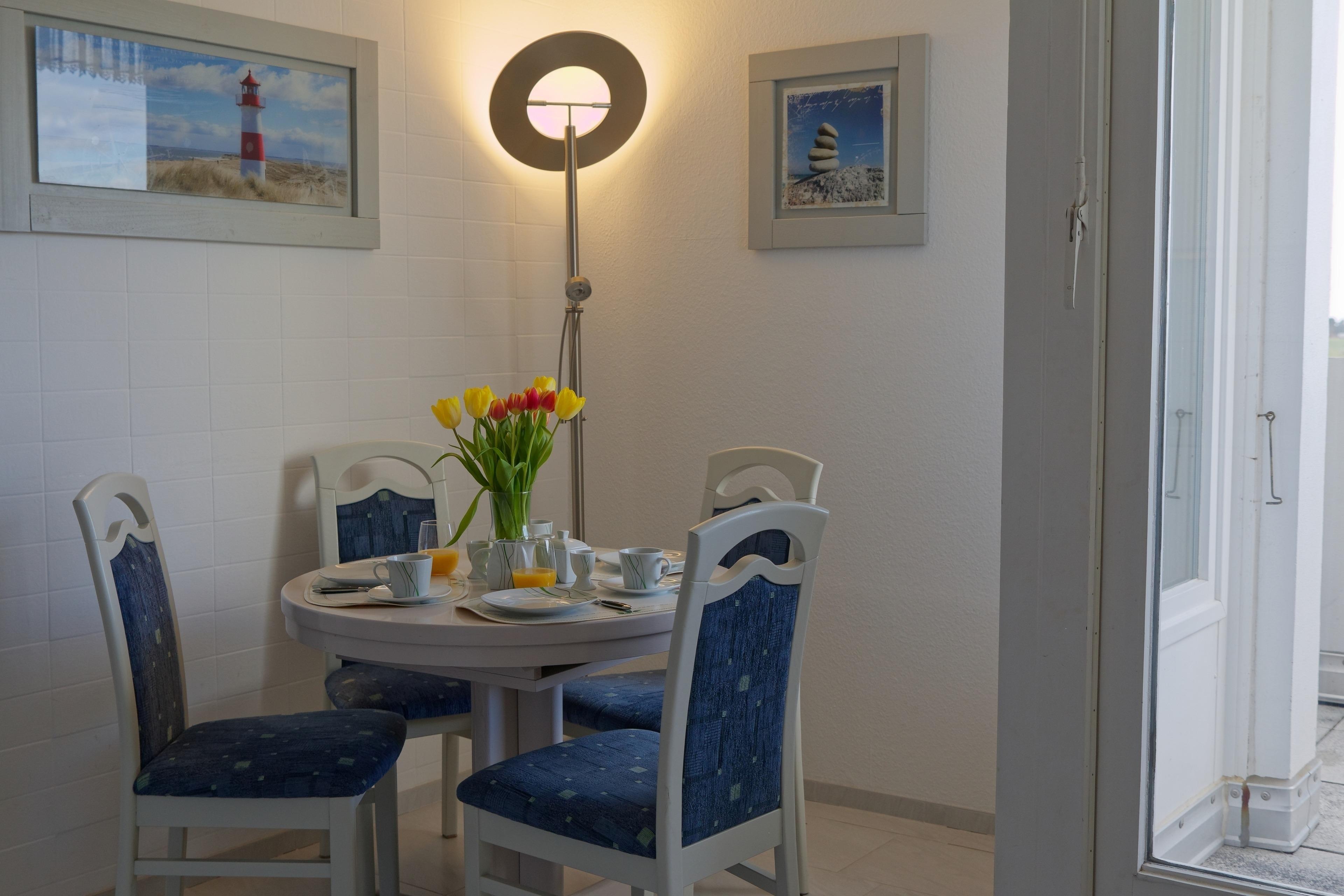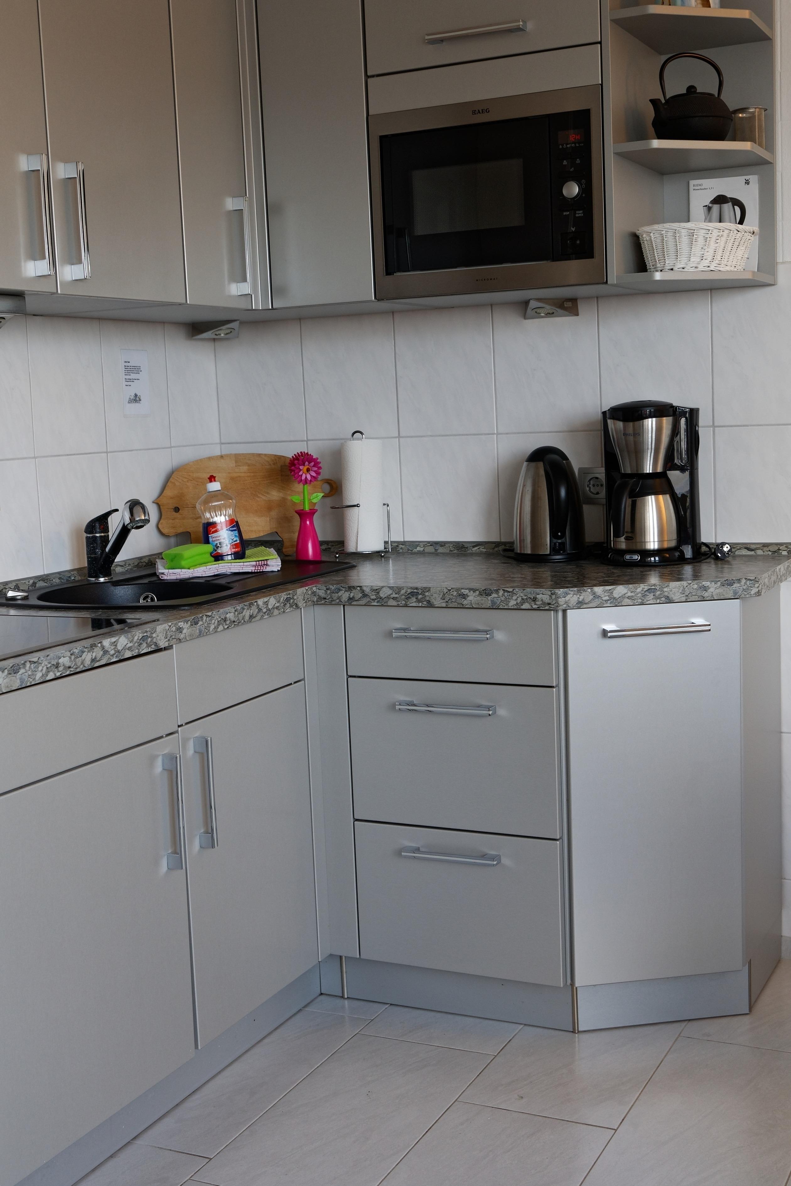 Der offene Küchenbereich ist mit einem Ceranfeld (4 Kochzonen), Mikrowelle, Kühlschrank mit Gefrierfach sowie Essbereich ausgestattet.