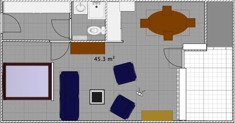 Die 1 ½ Zimmerwohnung besteht aus einem Wohnzimmer mit einer gemütlichen Schalfcouch und mit einem neuen LCD-Fernseher (43°), Stereoanlage mit CD-Player, BlueRay-Player sowie kostenfreiem W-LAN.