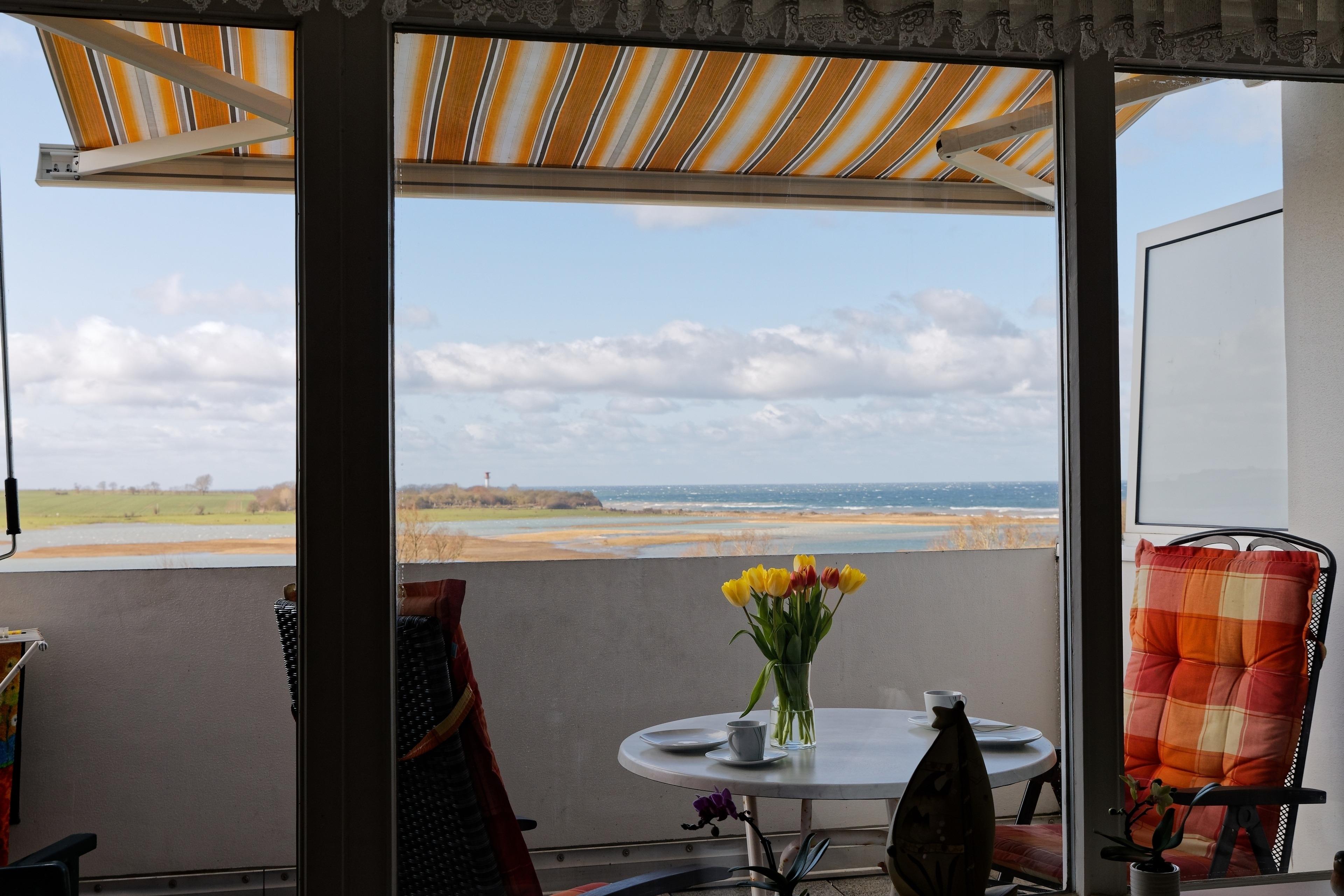 Unsere 45 qm große Ferienwohnung befindet sich in der 5. Etage, Westseite mit einem traumhaften Blick auf die Ostsee und den vorgelagerten Feuchtwiesen.