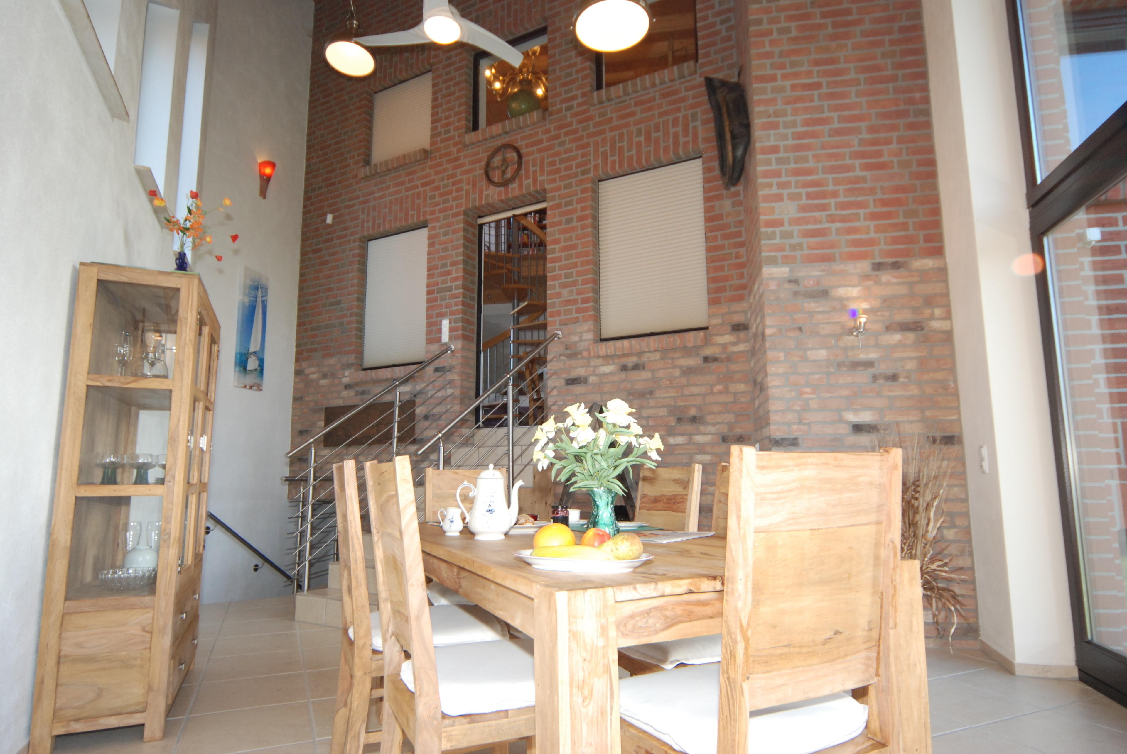 Wir bieten für Ihren Urlaub in Heiligenhafen eine höherwertige Gesamtausstattung mit gehobenem Komfort. Ansprechende Ferienwohnung mit einem aufeinander abgestimmten Gesamteindruck. In jedem Raum einzeln regulierbar Fußbodenheizung, die Möbel sind in Hartholz und vermitteln ein exklusives Wohlgefühl. Das großzügige Wohnzimmer mit 24 qm Wohnfläche ist ausgestattet mit Ledergarnitur, Flachbild, DVD, Stereoanlage. Wohnen zum Wohlfühlen und Relaxen. Die separate Küche mit Backofen, Geschirrspüler, Kaffeepadmaschine und diversen Kleingeräten(wie Wasserkocher, Toaster, Mikrowelle usw.) lädt zum gemeinsamen Kochen ein. Das Esszimmer ist offen bis in den Dachgiebel im Wintergartenstil mit großen Türen und Zugang in den Gartenbereich. Das großzügige Schlafzimmer mit Doppelbett ist mit massiven Holzmöbeln ausgestattet. Ein modernes Badezimmer mit Dusche rundet das Bild ab. Im Wirtschaftsraum finden Sie Waschmaschine, Trockner und Bügelmöglichkeit, außen einen weiteren überdachten Trockenplatz mit Wäschespinne. Im Wirtschaftsraum befindet sich zusätzlich ein Gefrierschrank. Ihre Hausdame nimmt Sie persönlich vor der Haustür in Empfang, führt Sie durch Ihre Ferienwohnung mit Schlüsselübergabe und verabschiedet Sie auch nach Ihrem Urlaub.