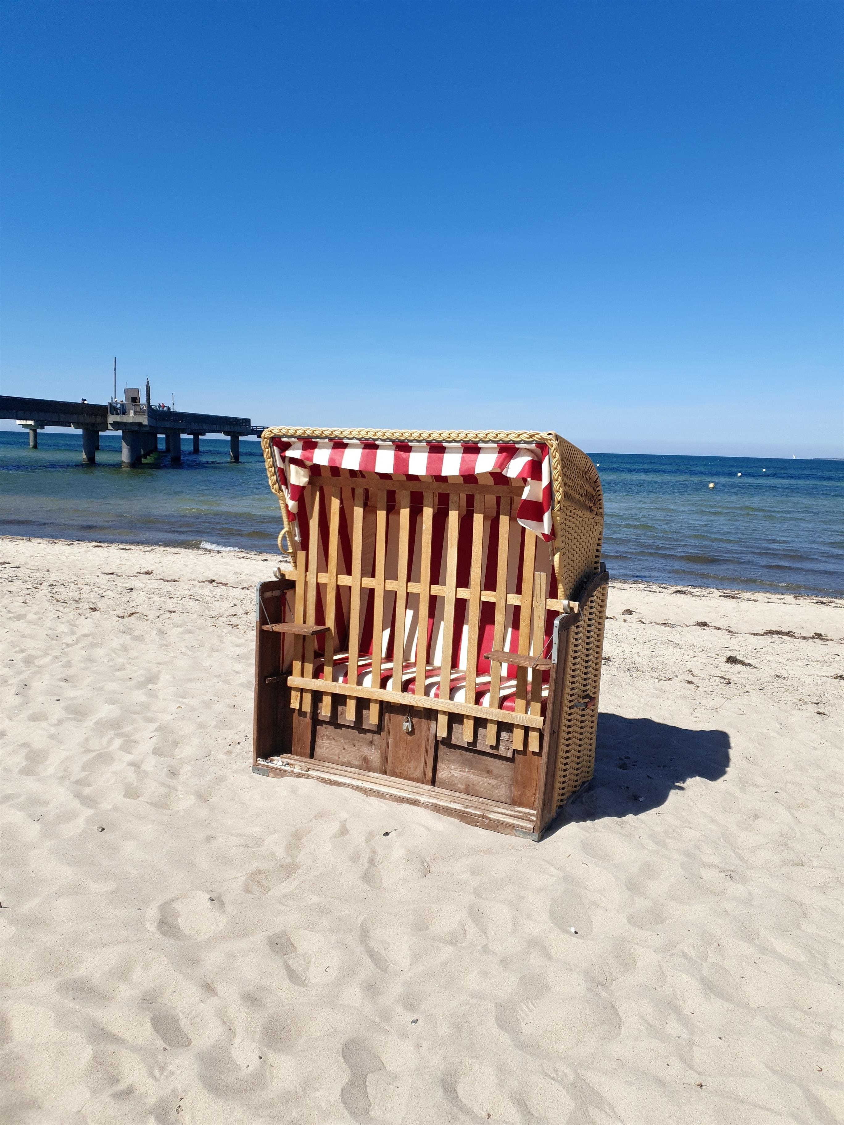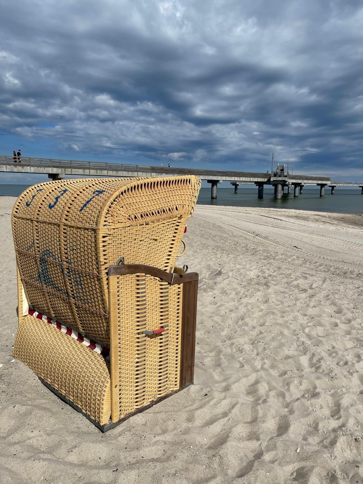 Neben der Erlebnis-Seebrücke steht Ihr XL-Strandkorb in Wasserlinie.