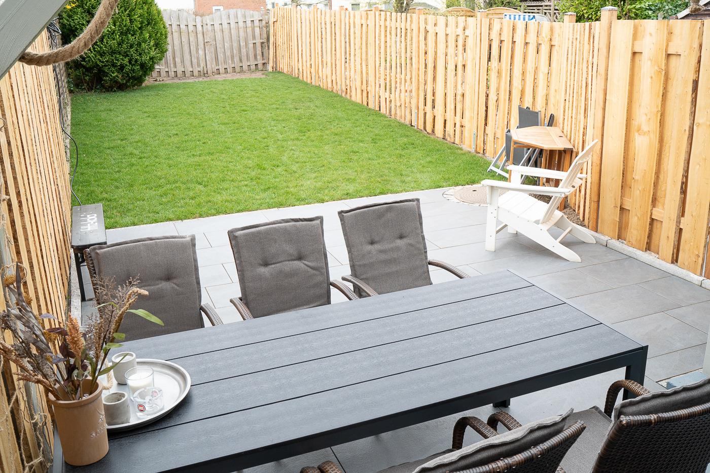 Die große Terrassentür führt Euch in den Garten. Eine Überdachung aus Glas sorgt für Schutz bei unbeständigem Wetter. Für die Kinder oder den Hund bietet der komplett umzäunte Garten Auslauf und Platz zum Toben.