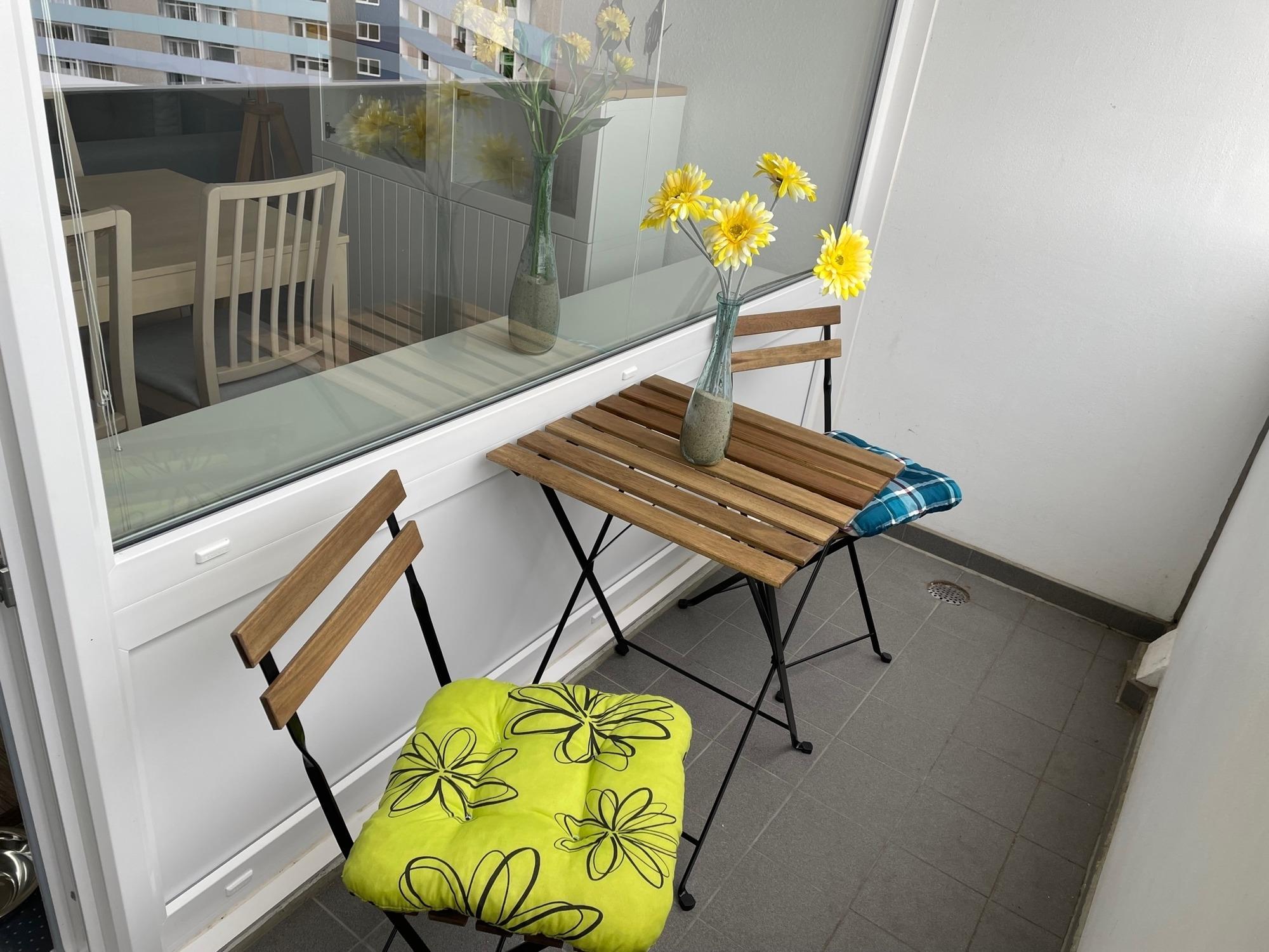 Die 45 qm Wohnung befindet sich im Ferienpark im Block N in der 9. Etage. Das Gebäude hat einen Fahrstuhl. Die helle, modern eingerichtete Wohnung, ist mit einem Laminatfußboden ausgelegt. Es befindet sich eine offene Küche in der Wohnung, die an den Wohn-Schlafraum grenzt. Die Küche ist mit einem Backofen, 4-Plattenherd und einer Mikrowelle ausgestattet. Der Schlafbereich kann vom Wohnzimmer mit einem Vorhang abgetrennt werden und verfügt über zwei Einzelbetten. Im Wohnbereich befindet sich eine kleine Essecke, außerdem lädt eine moderne Eckcouch zum Verweilen ein. Im Kinderzimmer finden Sie ein ein Etagenbett.