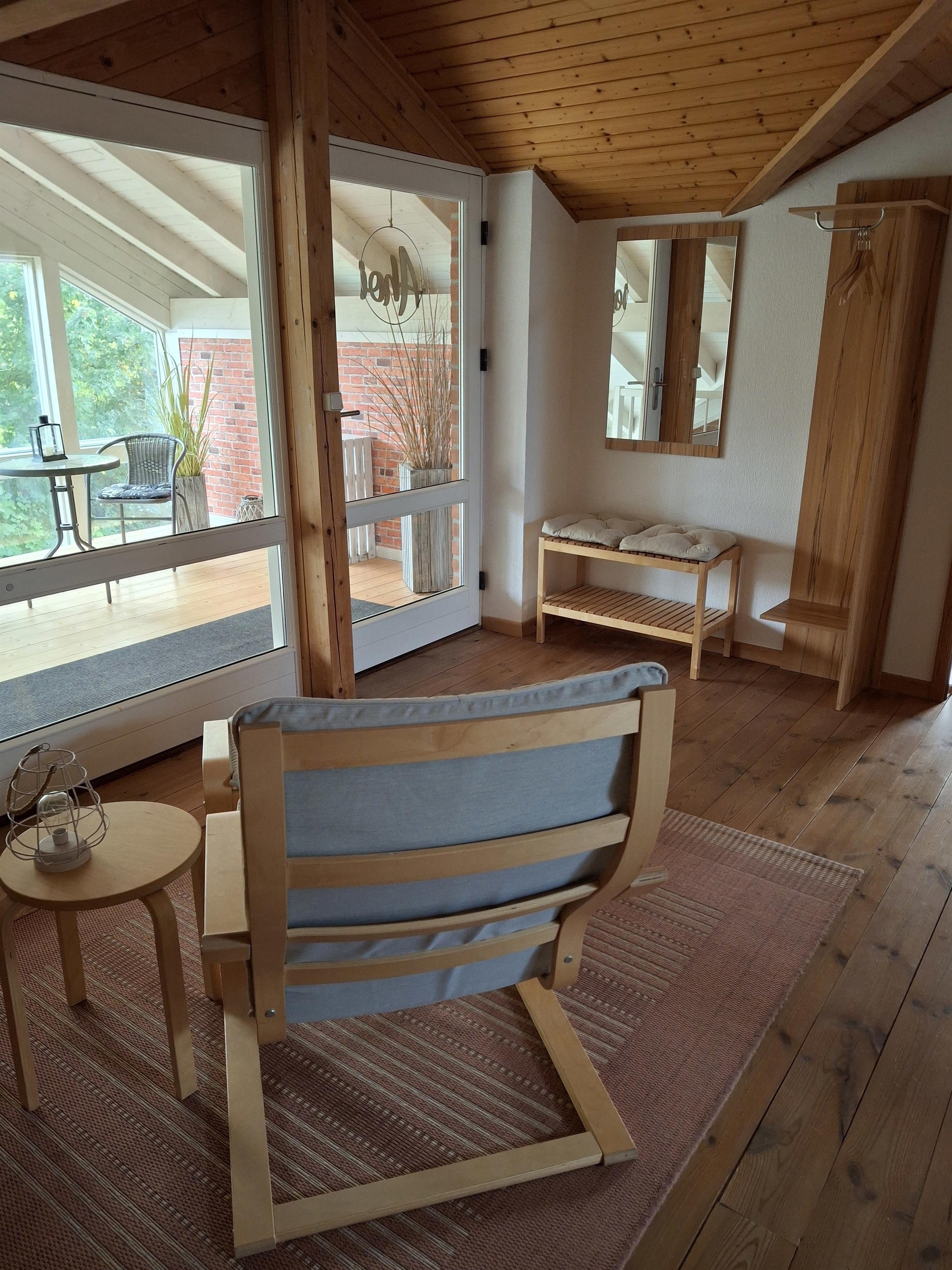 Modernes Architektenhaus mit viel Platz. Diese Ferienwohnung befindet sich in einem ruhigen Wohngebiet – hier können Sie sich erholen! Die liebevoll und modern ausgestattete Nichtraucher- Ferienwohnung liegt im Obergeschoss des Hauses. Die wohnliche Gesamtausstattung mit gutem Komfort bietet alles was man für einen Urlaub braucht. Im Wohnzimmer finden Sie eine gemütliche Sofalandschaft, einen separaten Essplatz sowie einen Flachbildfernseher. Im Schlafzimmer befindet sich neben dem Doppelbett ein weiterer Flachbildfernseher. Die separate Küche lasst auch keinen Wunsch offen. Sie ist ausgestattet mit einer Geschirrspülmaschine, Mikrowelle, 4-Plattenherd, Backofen und diversen anderen Kleingeräten. Das hochwertige und moderne Badezimmer rundet das Ganze ab. Zu der Ferienwohnung gehört ein gemütliches Plateau im Wintergarten, ein eigenes kleines Gartengrundstück mit Sitzmöbeln, 2 Gartenliegen, Grill und ein Gerätehäuschen zum Unterstellen von Fahrrädern etc.