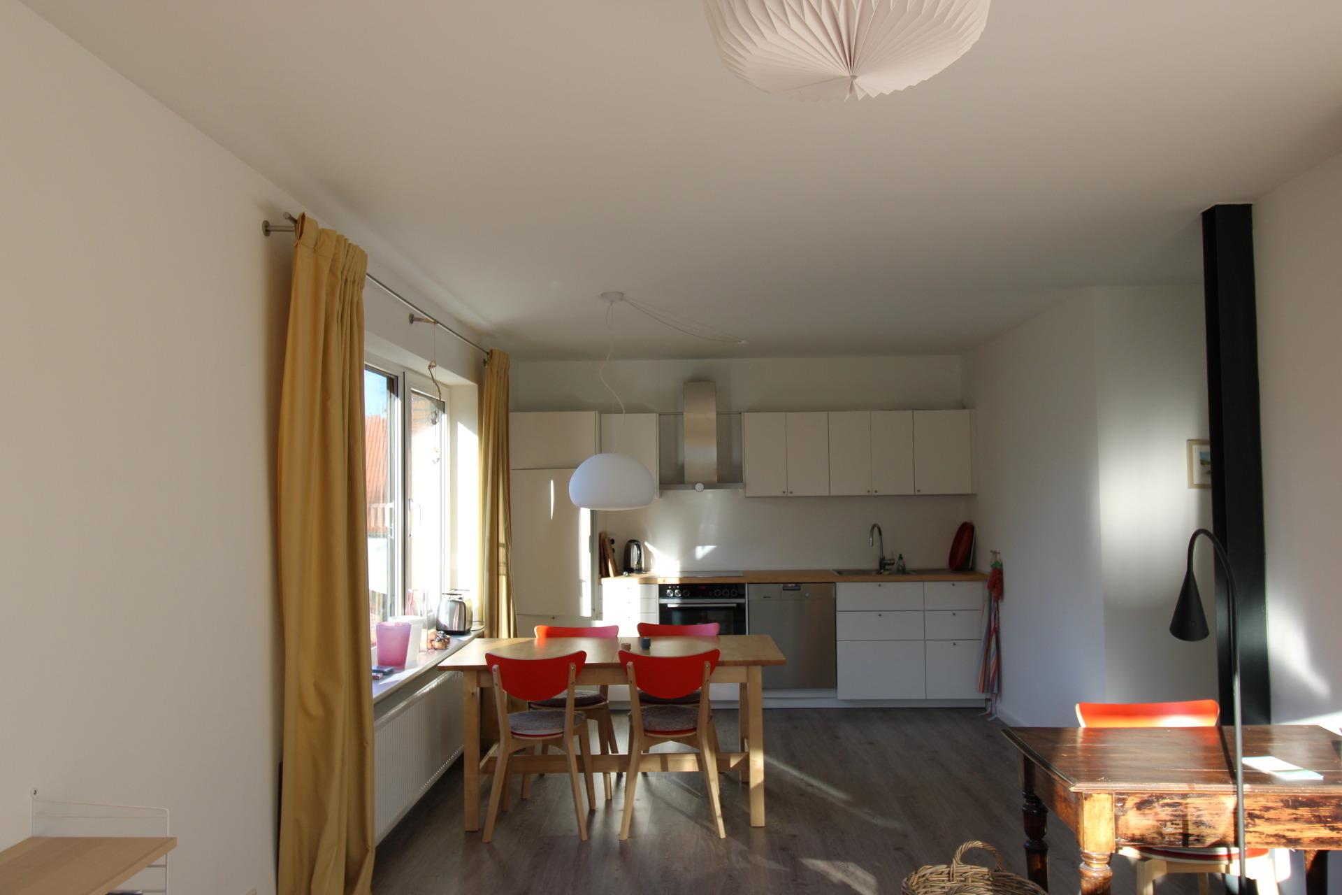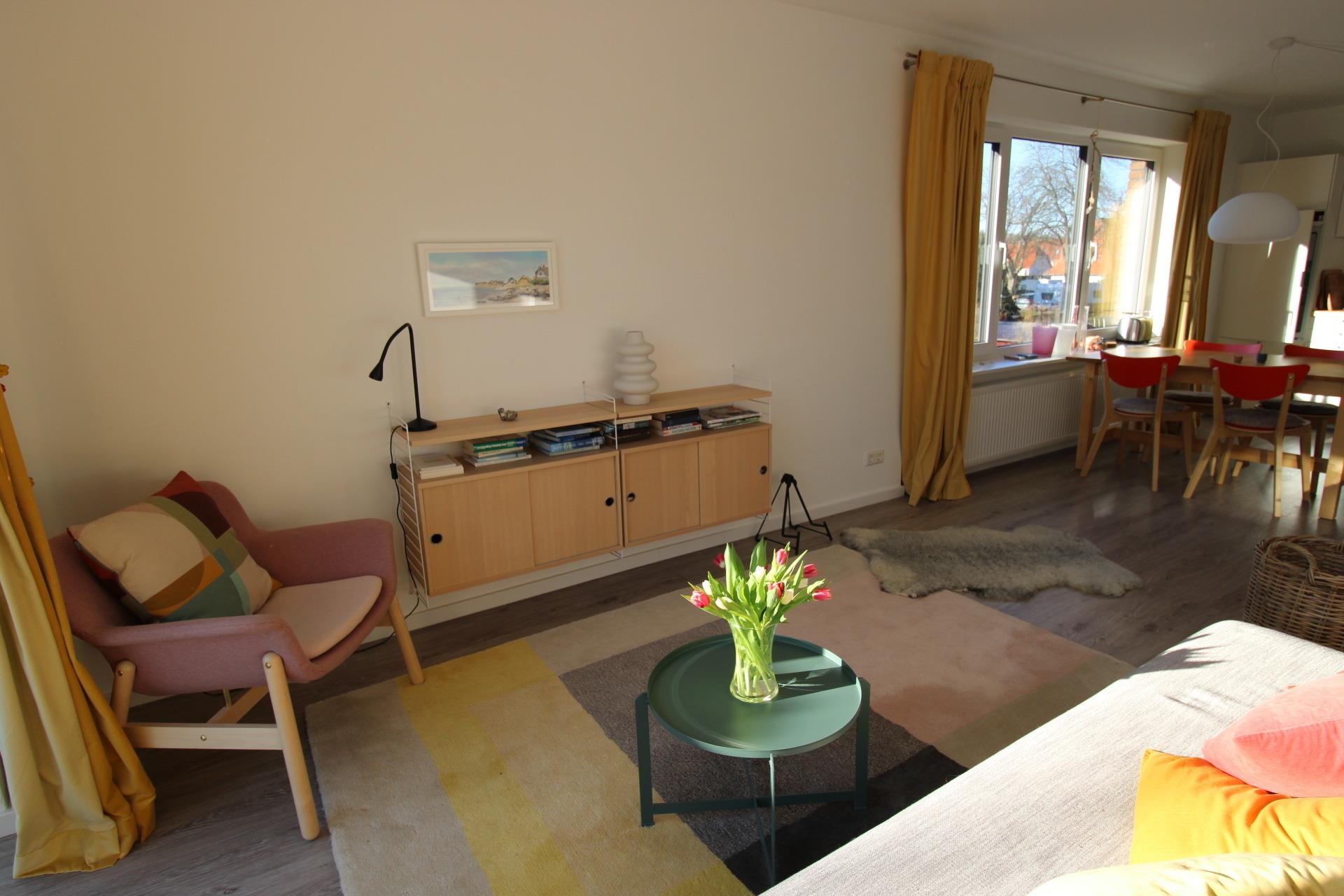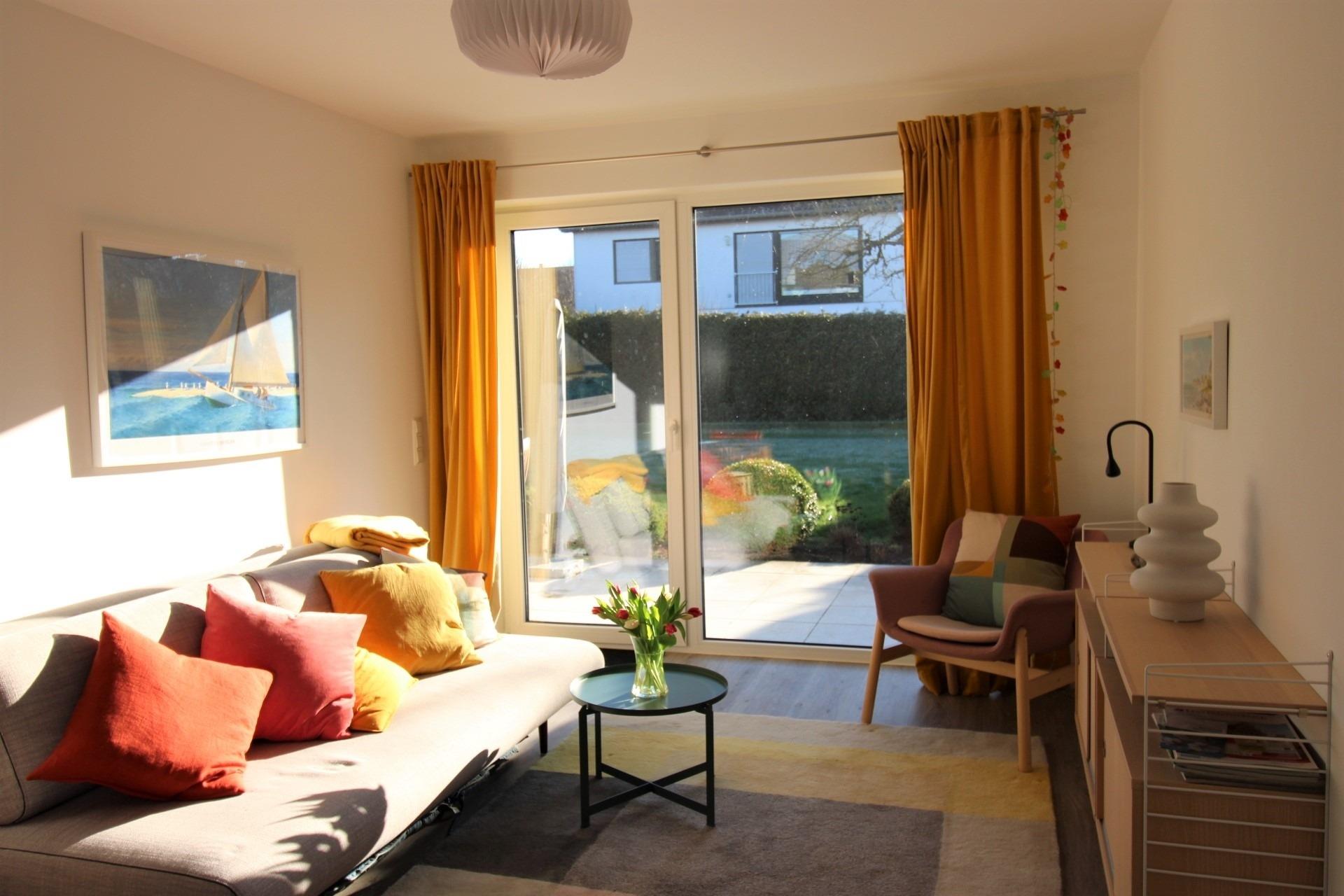 Die 2020 renovierte, in einem ruhigen Wohngebiet gelegene Wohnung ist liebevoll im skandinavischen Stil eingerichtet. Sie hat eine voll ausgestattete Küche und einen lichtdurchfluteten Wohn-Essbereich mit bequemem Sofa zum Entspannen. Vom Wohnzimmer aus haben Sie Zugang zur Südterrasse und zum geschützten Garten, wo Sie es sich in der Teakholzsitzgruppe oder im Liegestuhl bequem machen können. Ein Sonnenschirm sorgt bei Bedarf für Schatten. Feuerkorb und Grill gibt es auch. Im Innenbereich befinden sich ein separates Schlafzimmer mit einem 1,60 m breiten Doppelbett und ein modernes, stilvolles Bad mit Rainforest-Shower. Bettwäsche und Handtücher sind inklusive.