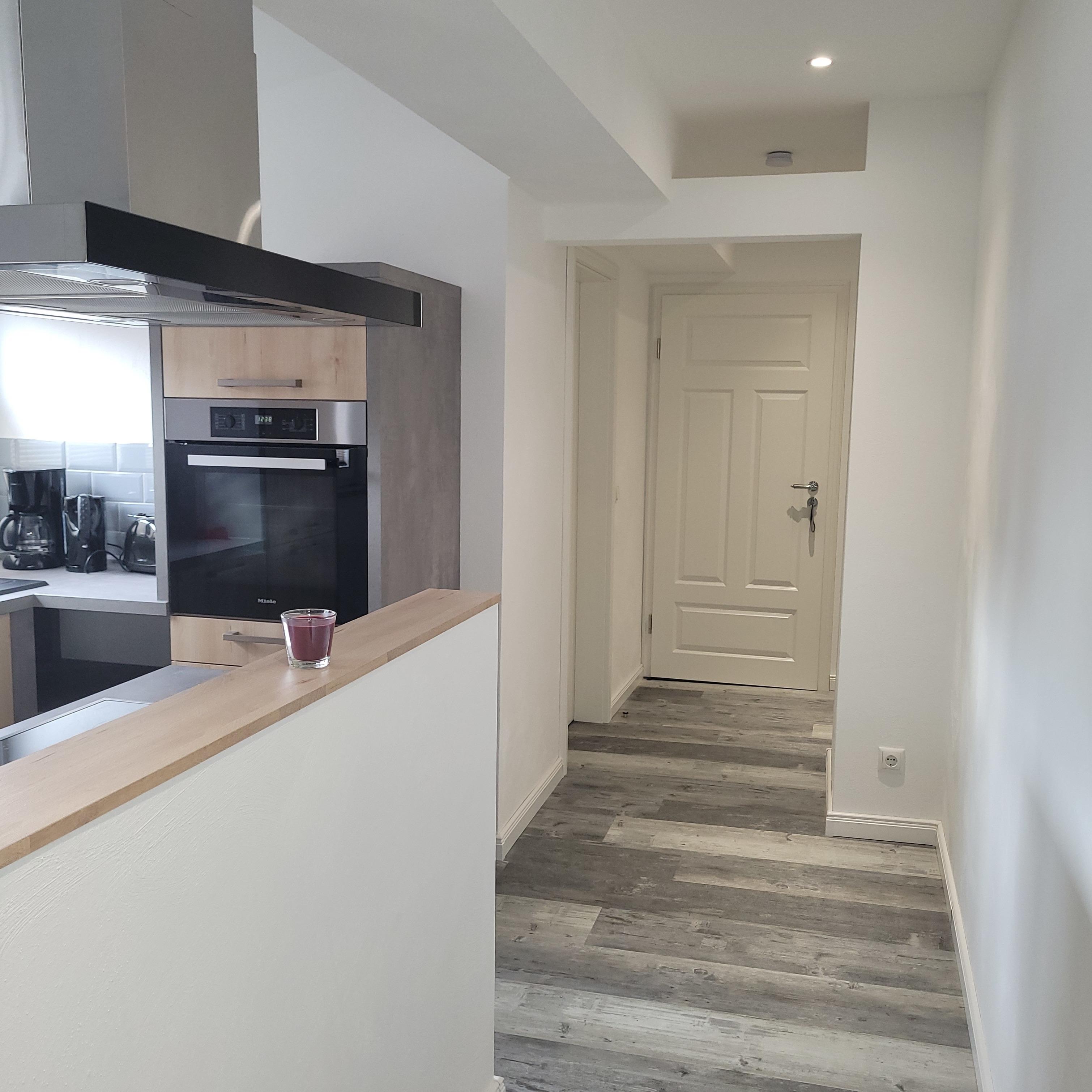 Das für zwei Personen bis max. vier Personen mit Liebe zum Detail geschmackvoll eingerichtete "Loft" liegt im 1. Obergeschoss eines am Rande der Altstadt gelegenen Hauses nur wenige Minuten vom Hafen, Marktplatz und von der neuen Binnenseepromenade entfernt. Das Haus wurde um 1900 erbaut und im Eingangsbereich lässt sich der Jugendstil-Charakter des Hauses noch erkennen. Das Haus wurde seit 2020 mit einem neuen vollisoliertem Dach, Fenstern und Türen energetisch saniert, die Außensanierung des Hauses wurde in 2024 abgeschlossen, somit ist es nun auch von außen ein Hingucker. Das gemütliche im "Industrial-Look" eingerichtet Apartment verfügt über eine moderne, hochwertige Ausstattung. Im Wohnzimmer befindet sich ein automatisierter Pelletofen, der auch nach langen Strandsparziergängen in der kalten Jahreszeit zum Aufwärmen und Verweilen einlädt. Des Weiteren befindet sich im Wohnzimmer ein qualitativ hochwertiges Sofa, dass nur mit einem Handgriff zu einer Schlafcouch mit Topper für max. 2 Personen umgebaut werden kann. Das Schlafzimmer ist mit einem komfortablen Boxspringbett plus Topper für einen erholsamen Schlaf eingerichtet. Das "Loft" besitzt ein modernes Duschbad mit WC, Waschtrockner und Föhn. Die komplett eingerichtete Einbauküche verfügt über einen Geschirrspüler, Kühlschrank, Kücheninsel mit Ceranherd, Backofen, Toaster, Kaffeemaschine und Wasserkocher. Zur weiteren Ausstattung gehören: Flachbild-Fernseher, Radio-/CD-anlage, Bügeleisen, Bügelbrett und Wäscheständer.