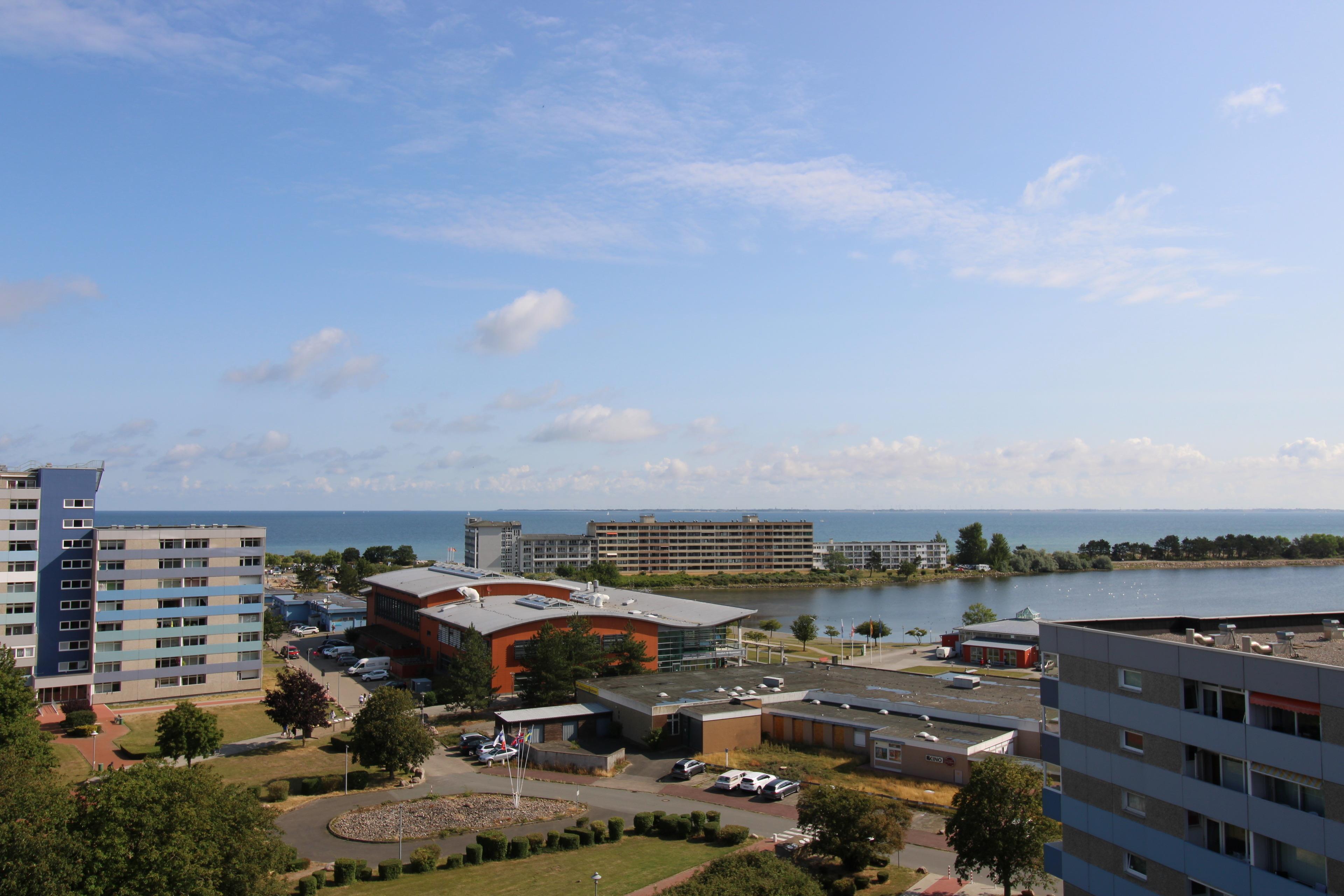 Maritime, kleine Ferienwohnung (40m²) mit Meer- und Seeblick im 9. Stock des Ferienparks. Die Wohnung verfügt über eine offene Küche , ein Doppelbett (180x200cm) und eine Schlafcouch. Vom Wohnraum können Sie den Segelschiffen auf der Ostsee zuschauen oder nach Fehmarn rüber blicken.