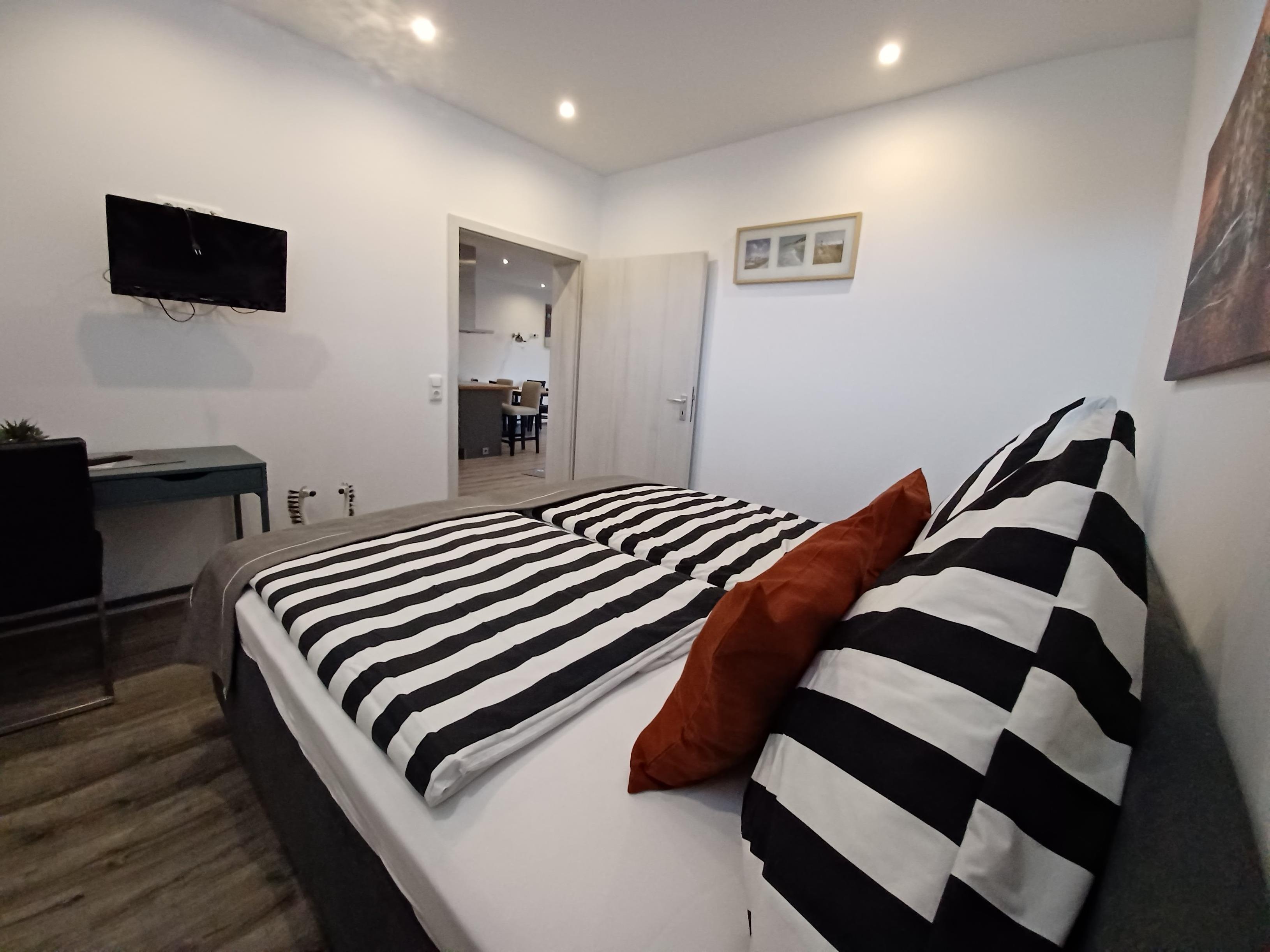 Die Wohnung verfügt über eine Wohnküche, 2 Schlafzimmer mit Doppelbetten und ein Badezimmer mit großer Dusche. Die Ausstattung der Küche beinhaltelt einen Geschirrspüler, einen Herd mit vier Kochplatten, Backofen; Kühlschrank, Gefrierschrank und natürlich auch eine Kaffeemaschine.