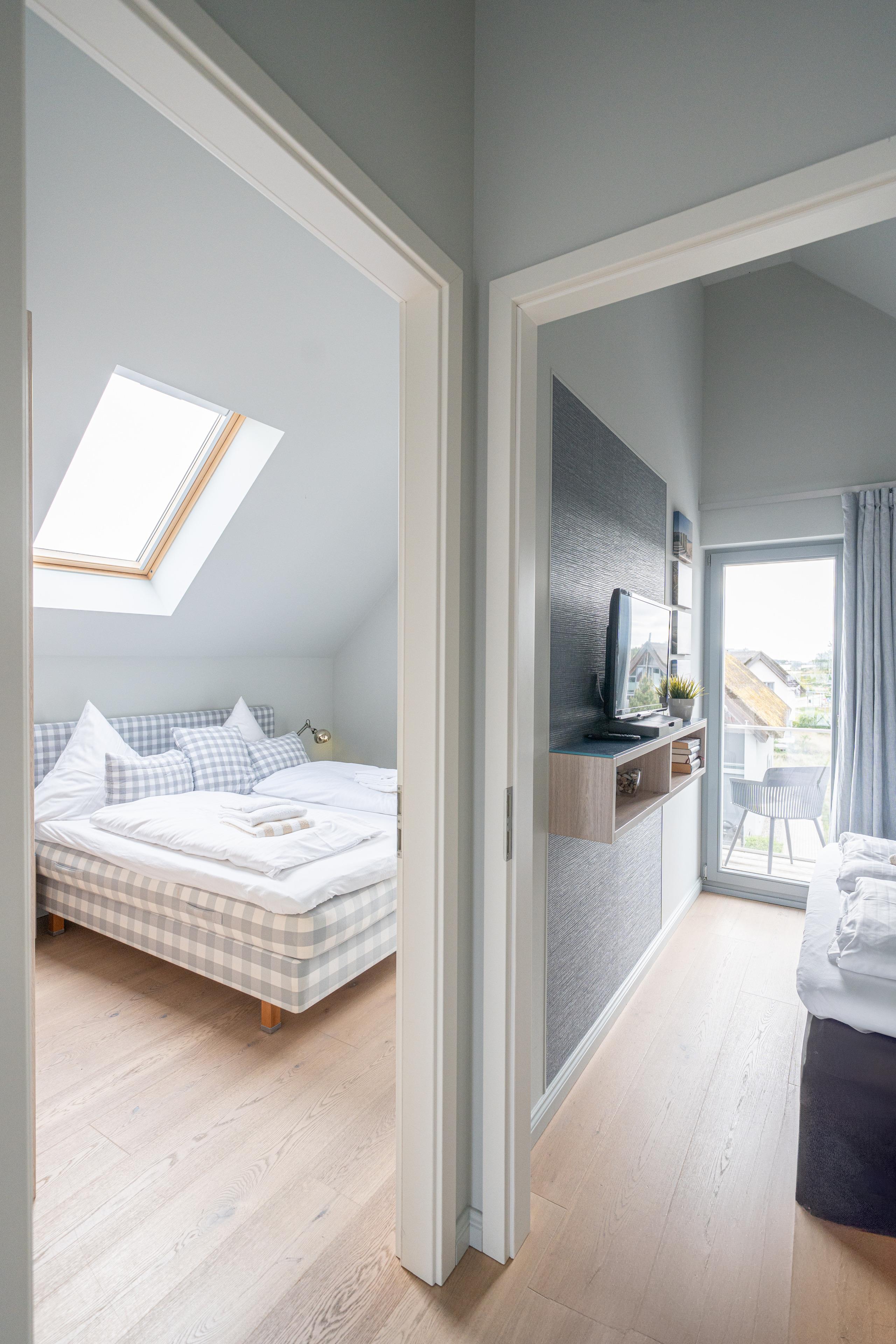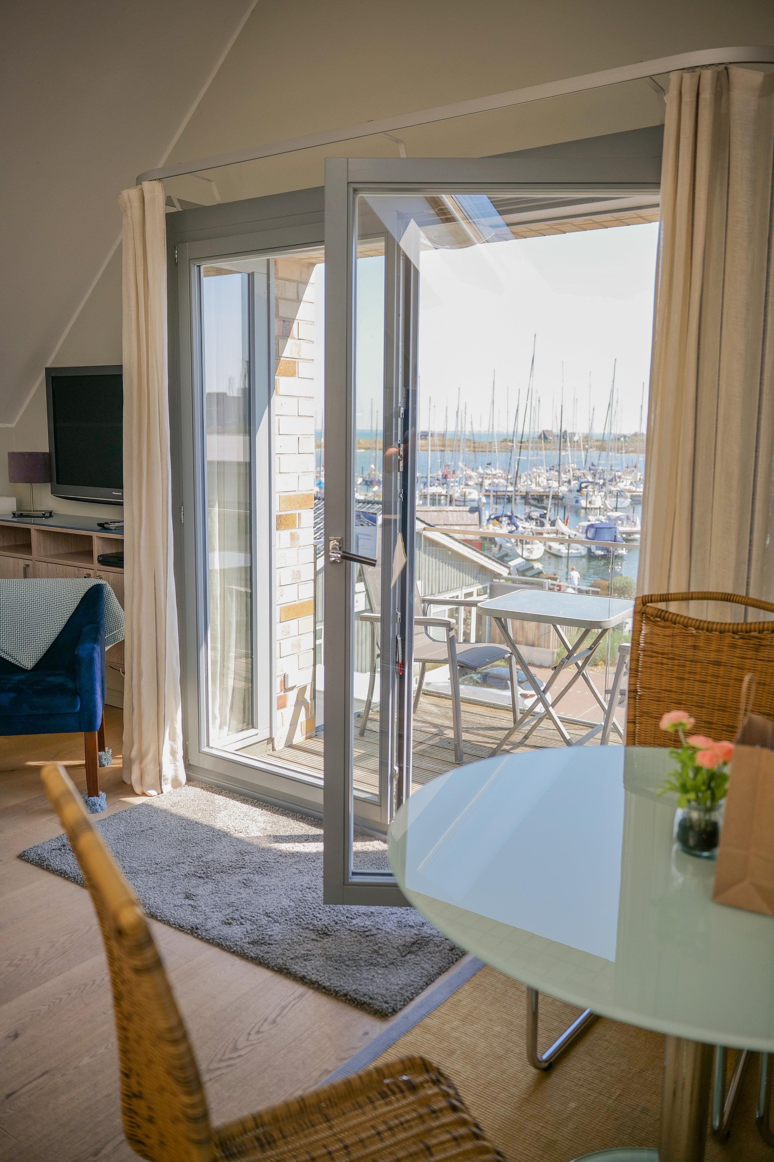 Die Wohnung ist mit Echtholz-Parkett ausgelegt. Der unverbaubare Ausblick (Süd/Ost) vom Wohnzimmerbalkon auf den Yachthafen und am Abend (Süd/West) vom Schlafzimmerbalkon auf den Binnensee mit der beleuchteten Promenade lassen Sie jeden Ferientag genießen. Die Wohnung hat zwei Schlafzimmer mit Einbauschränken (2x Boxspringbetten). Das geräumige Duschbad mit Regendusche und Fenster runden das Ambiente ab. Für Ihr Fahrzeug ist ein Stellplatz vor dem Haus reserviert.