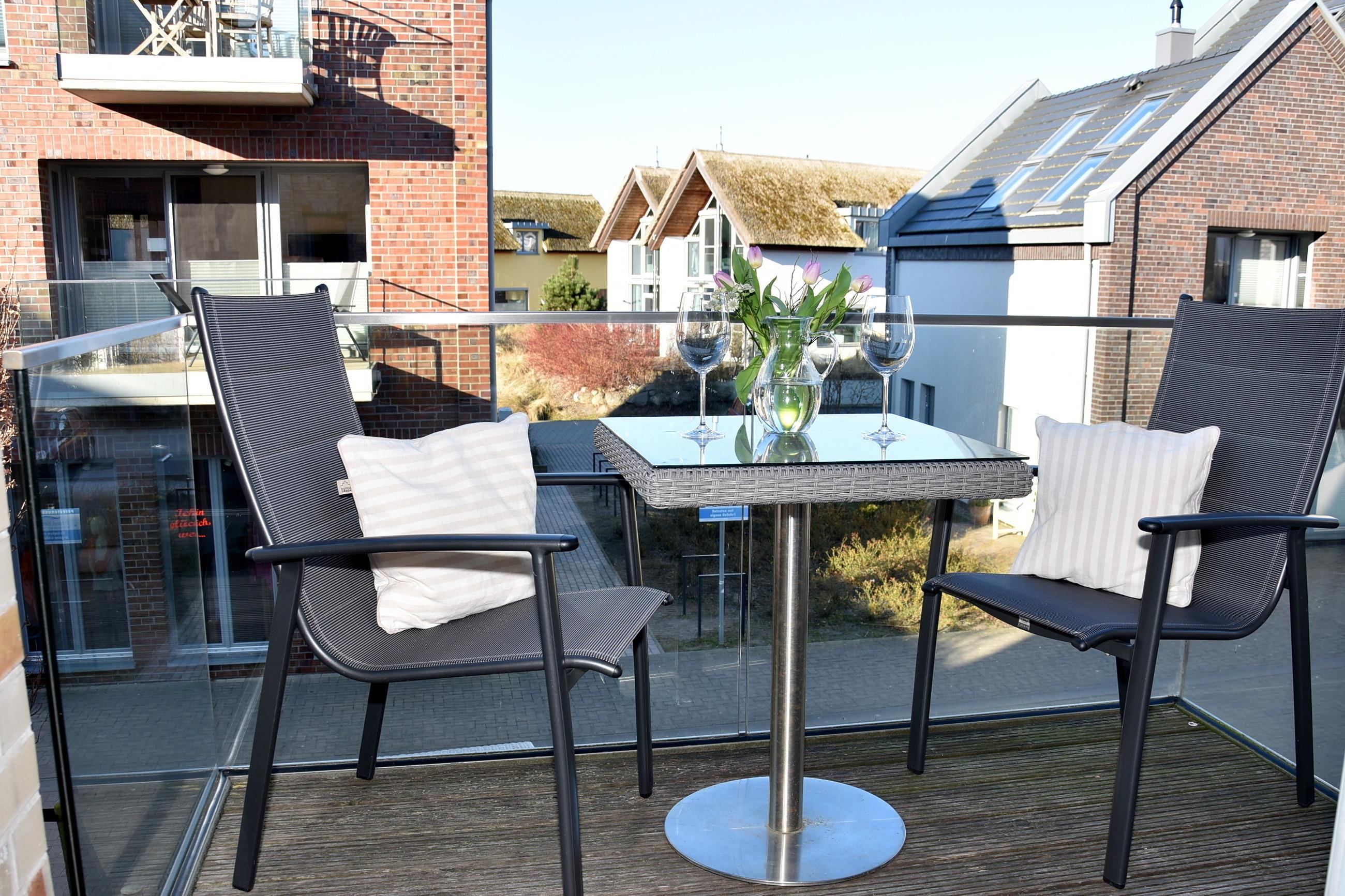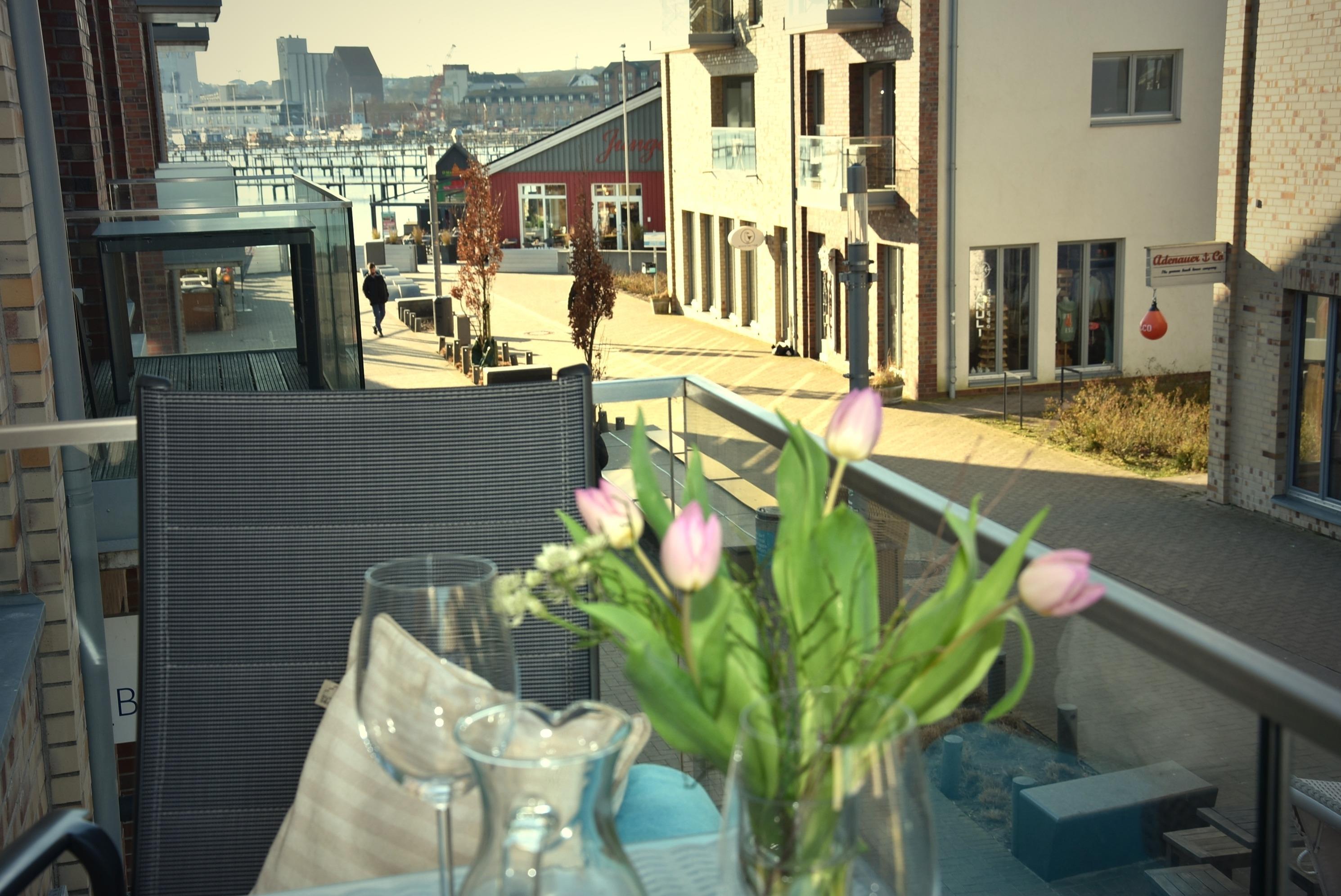 Zur Wohnung gehören 2 Balkone, vom Balkon in südlicher Ausrichtung genießen Sie den Blick auf den Yachthafen und die Promenade.