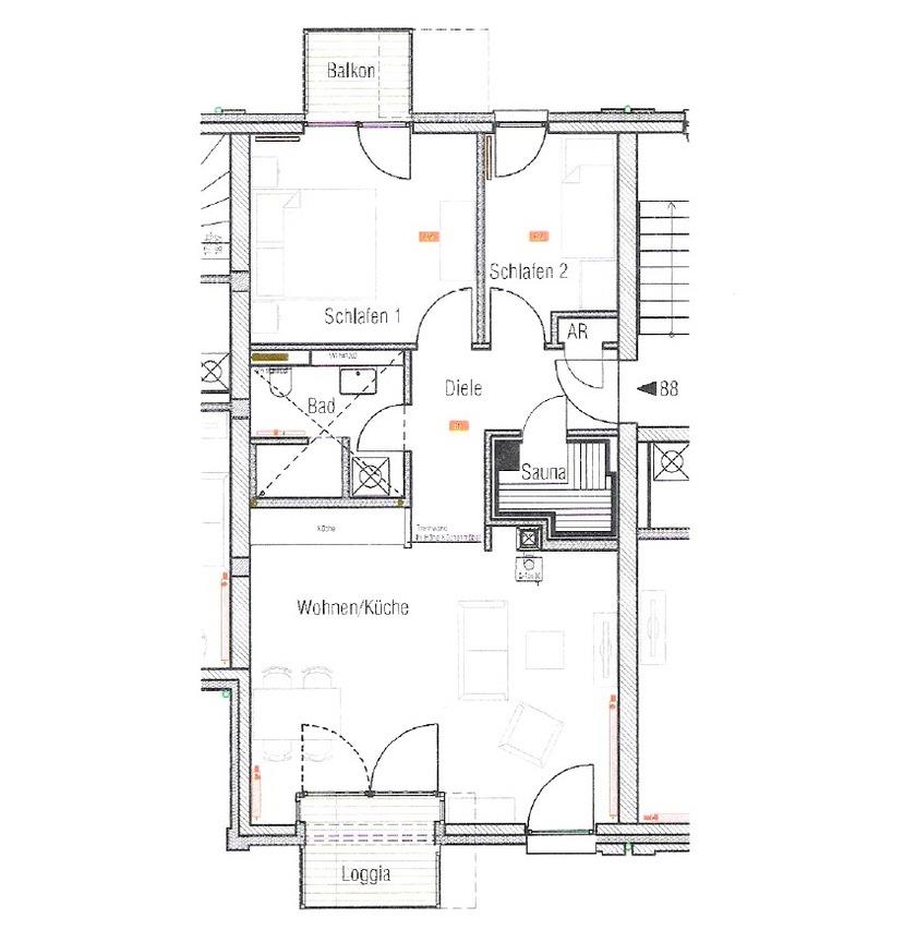 Zudem befindet sich in der Wohnung eine gemütliche finnische Sauna aus hellem Fichtenholz.