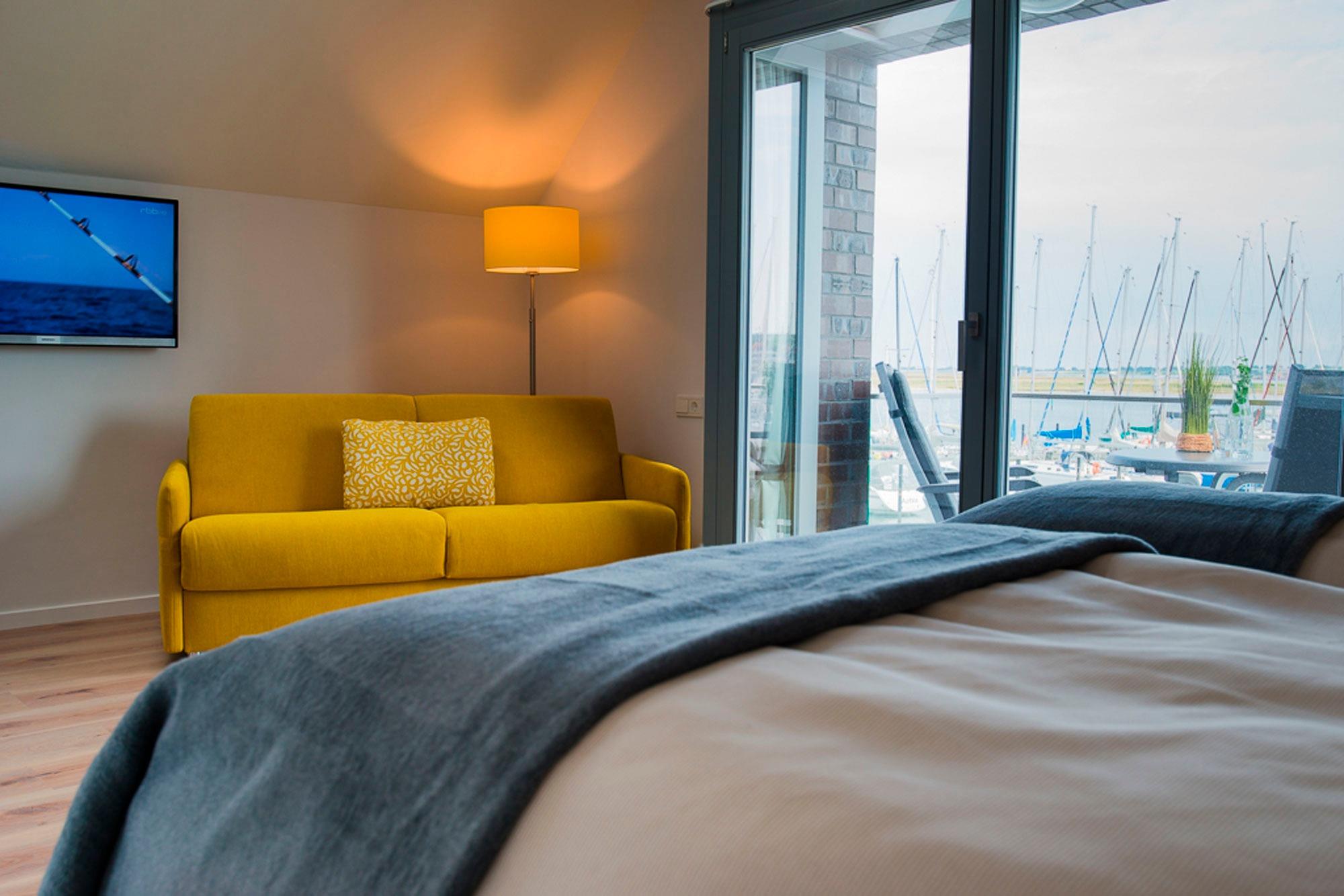 Die Schlafzimmer locken mit einem Blick auf den Jachthafen, die Dünen und auf die Ostsee.