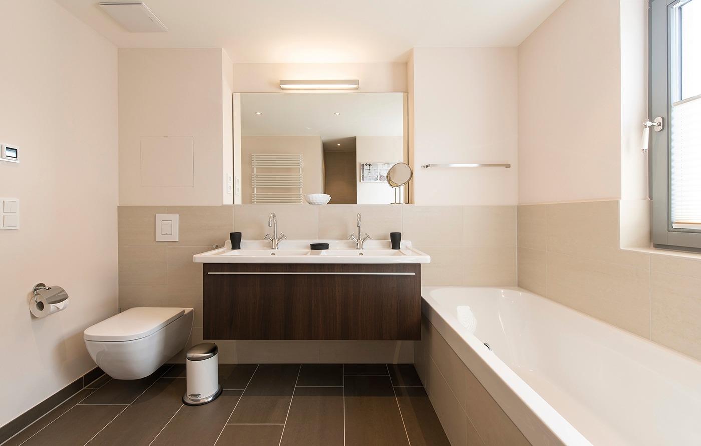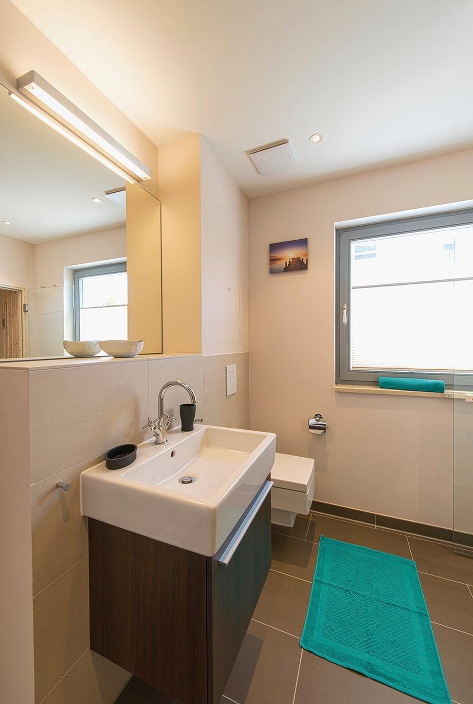 Im Obergeschoss gelangen Sie aus allen 3 Schlafzimmern auf den Balkon bzw. die Loggia, die Loggia lockt mit einem Ausblick auf den Yachthafen, der Balkon verwöhnt Sie in der Abendsonne mit einem Ausblick auf den Binnensee. Alle Schlafzimmer sind mit Boxspringbetten, TV und genügend Stauraum ausgestattet und können über Black-Out-Vorhänge komplett verdunkelt werden. Das Wellness-Bad verfügt über eine Badewanne, Dusche und einen Doppelwaschtisch. In einem separaten Abstellraum finden Sie eine Waschmaschine/Trockner gegen Gebühr.