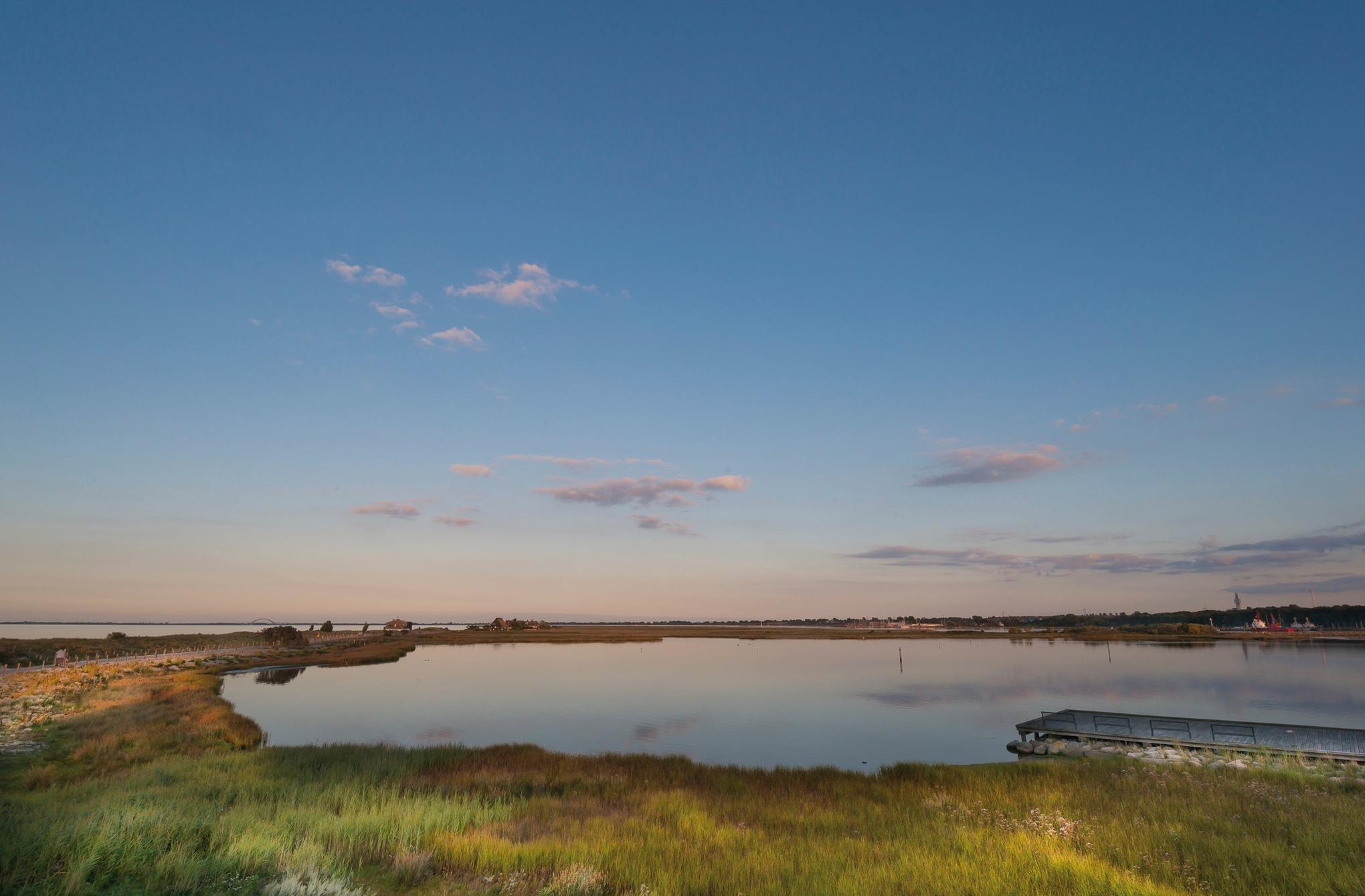 An der nordöstlichen Spitze des Strand Resorts liegt – ruhig und etwas für sich – das reetgedeckte 5-Sterne-Zwillingshaus "Utkiek". Es beeindruckt durch seine exponierte Lage mit durchgängig freien Blickrichtungen: Nach Norden unmittelbar Dünen, Strand und Ostsee, dazu in der Ferne Fehmarn und die Fehmarnsundbrücke. Richtung Westen bahnt sich die große Erlebnis-Seebrücke von Heiligenhafen ihren Weg ins Meer. Östlich umgibt das Haus das Ostseewasser mit dem unmittelbar angrenzenden Naturschutzgebiet Graswarder und nach Süden hat man den Marina-Yachthafen mit seinen ein- und ausfahrenden Schiffen vor sich.
