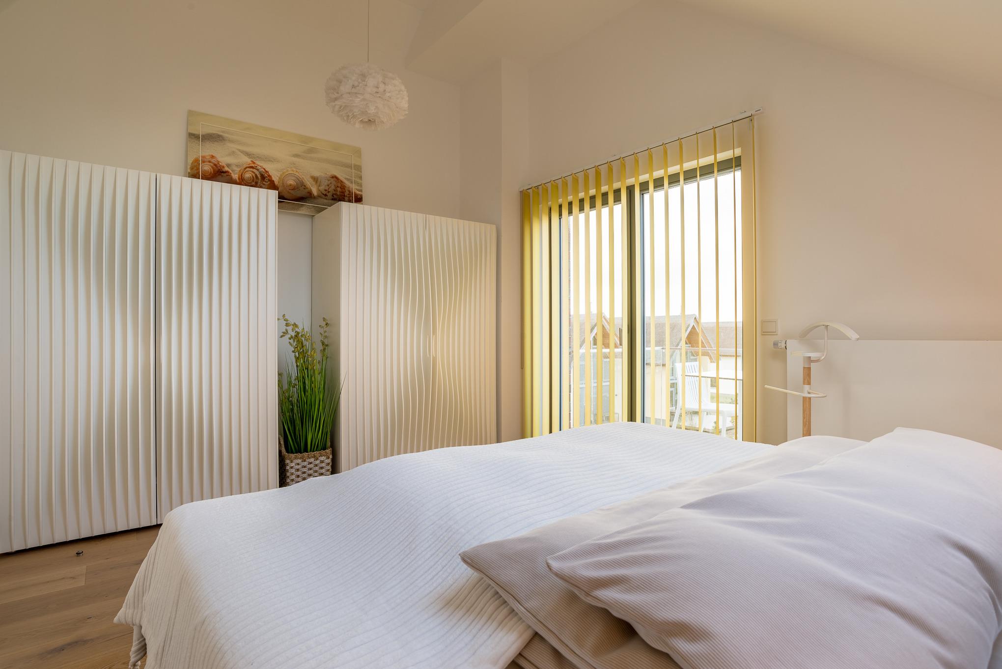 Lichtdurchflutet von Ost nach West, eine Traumwohnung mit über 5 Meter hohem Giebel, die sofort verzaubert. Morgens mit der aufgehenden Sonne auf dem Balkon frühstücken, auf das Meer und den Jachthafen zu schauen und abends im Westen die untergehende Sonne mit einem Glas Wein auf der großzügigen Loggia zu genießen, dass ist Entspannung pur. (Meerblick/Yachthafenblick von beiden Seiten).