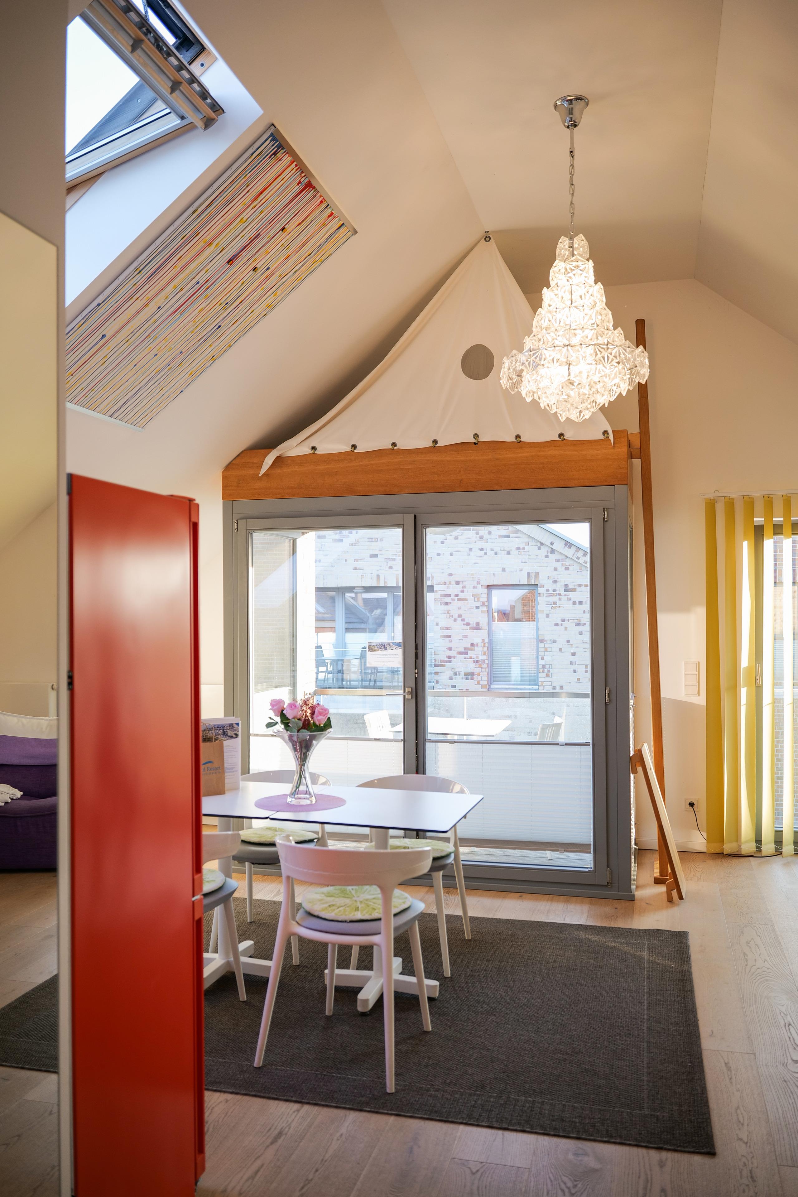 Raum frei für einen tollen Urlaub: die am höchsten gelegene Wohnung (2. Stock) mit Balkon und Loggia, sonnendurchfluteten Dachfenstern und einem zusätzlichen französischen Balkon wartet auf Sie.