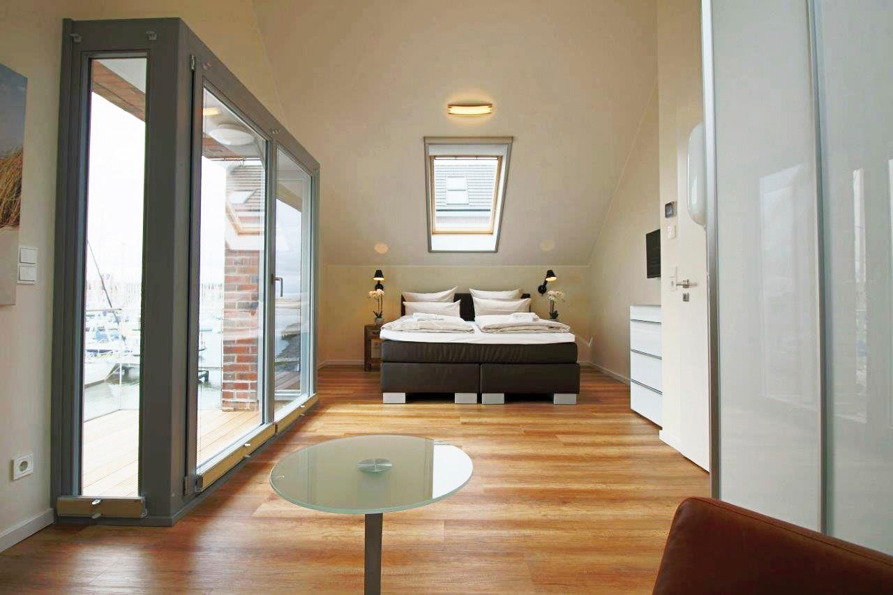 Hier liegt das Haus direkt am Yachthafen und hat einen traumhaften Blick auf diesen, sowie auf das Naturschutzgebiet Graswarder und die Ostsee.
