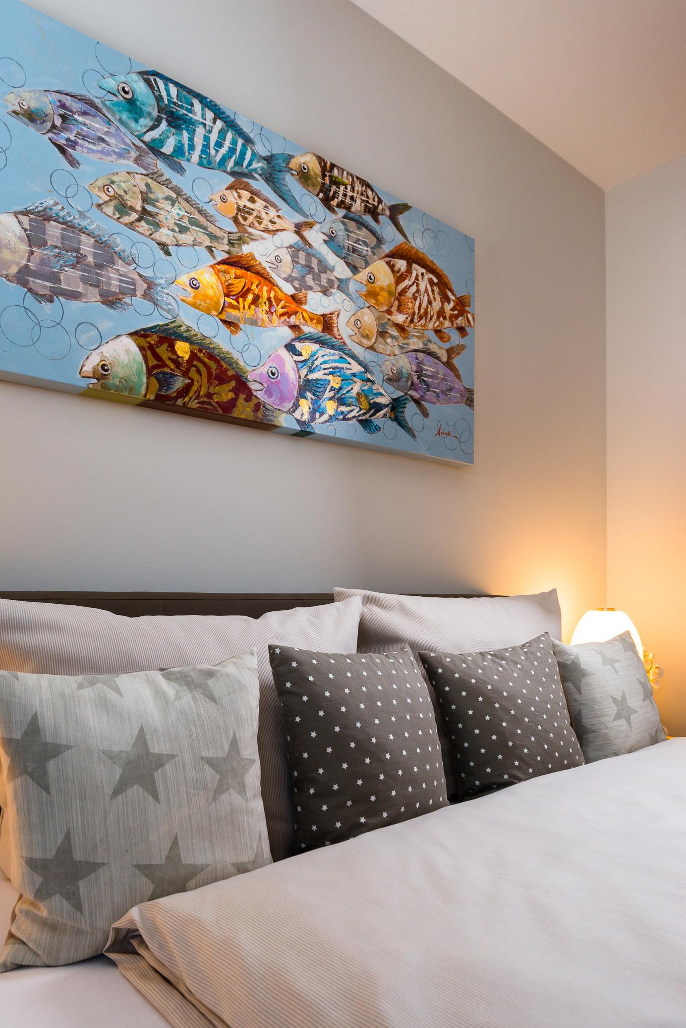 Wer auf der Suche nach einer Ferienwohnung ist, welche modern und exklusiv ist und dass gewisse Extra hat, für den ist diese Wohnung genau das Richtige! Hier erwartet Sie eine Ferienwohnung für zwei Personen mit einer gehobenen Ausstattung und viele Möglichkeiten zum entspannen. Bodentiefe Glasfronten sorgen für viel Tageslicht und die Bilder in der Wohnung - mit einem Augenzwinkern - lassen gute Laune aufkommen.
