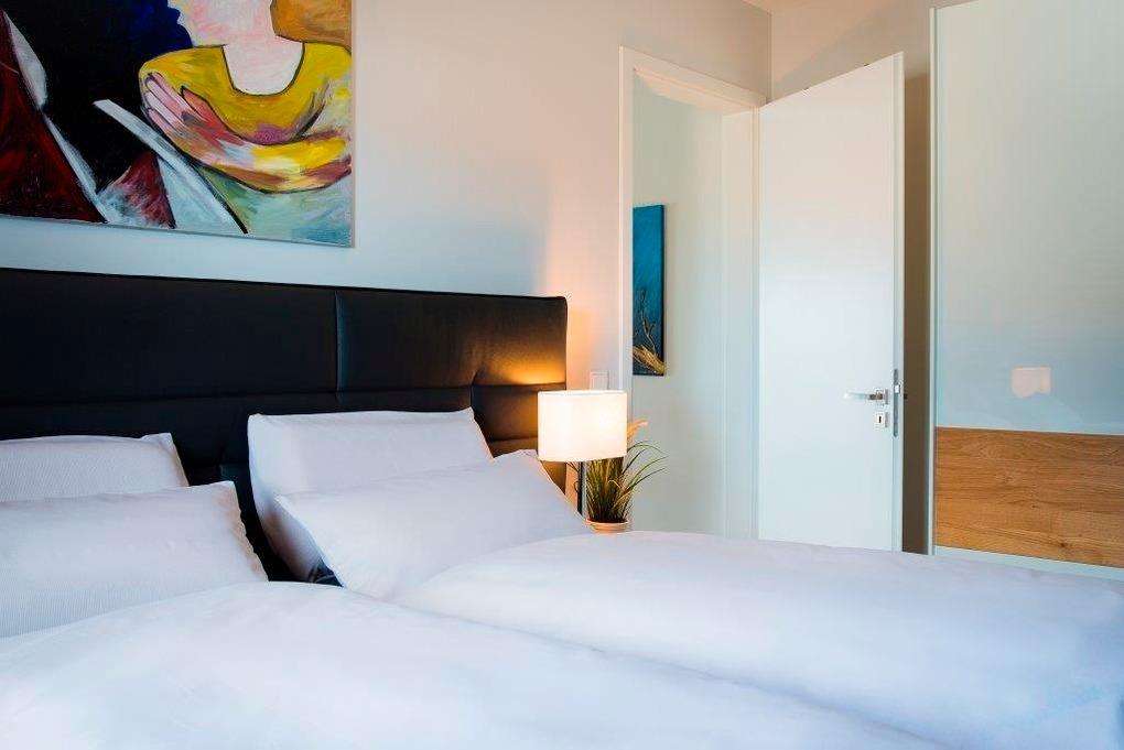 Bodentiefe Glasfronten öffnen den Blick in die Dünen und aufs Wasser. Hochwertige Materialien, eine gehobene Ausstattung, viel Licht und die Farben der Natur lassen keine Wünsche offen.