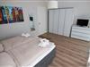 Zwei großzügige Schlafzimmer mit hochwertigen Boxspringbetten und eigenem Smart-TV schenken erholsame Nächte. Für die Kleinsten sind Kinderbett und Hochstuhl vorhanden. Das Badezimmer im Obergeschoss verwöhnt mit Badewanne und großer Regen-Dusche, im Erdgeschoss finden Sie eine weitere Dusche sowie eine integrierte Sauna – ein Genuss besonders an kühleren Tagen oder nach einem langen Spaziergang am Wasser.
