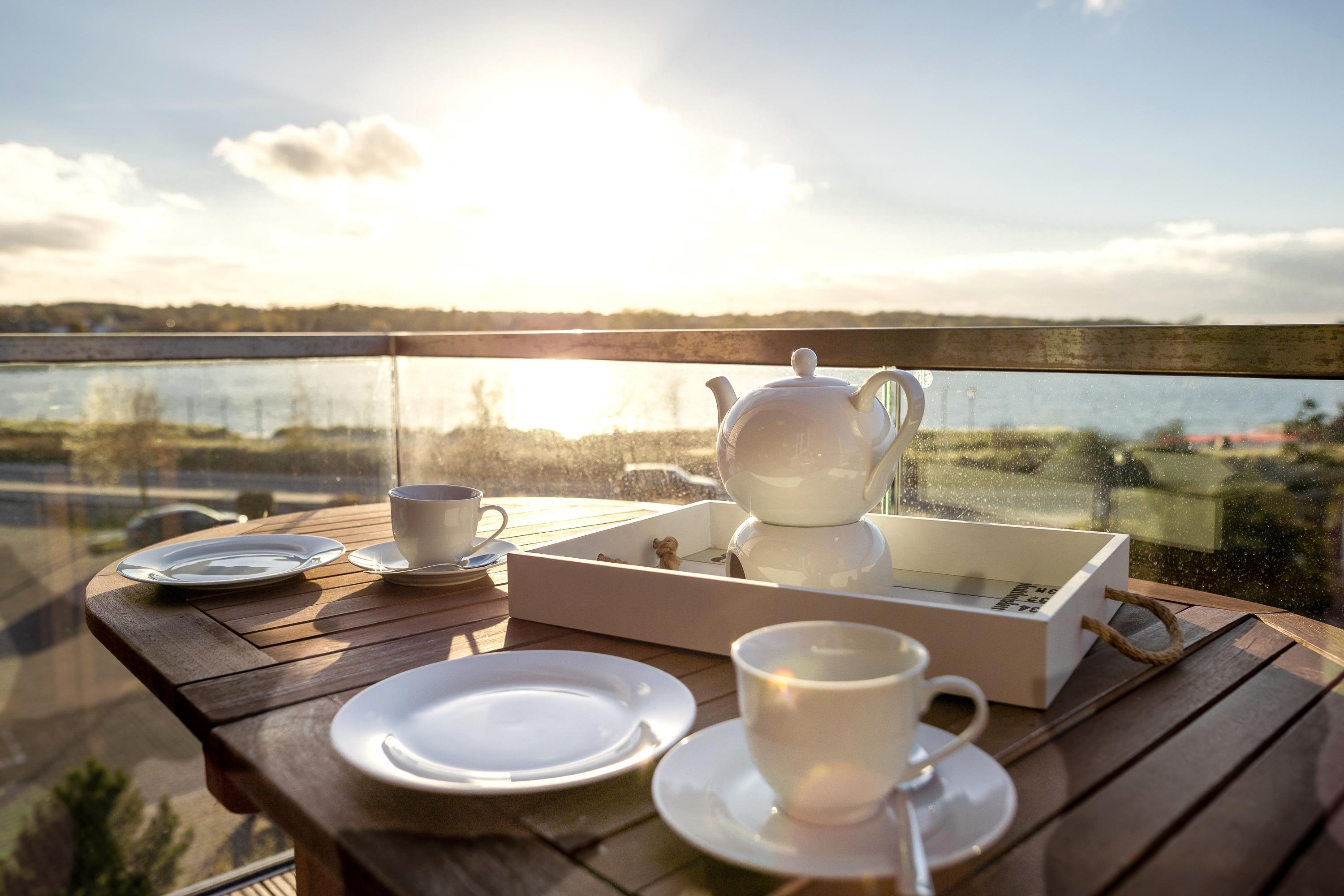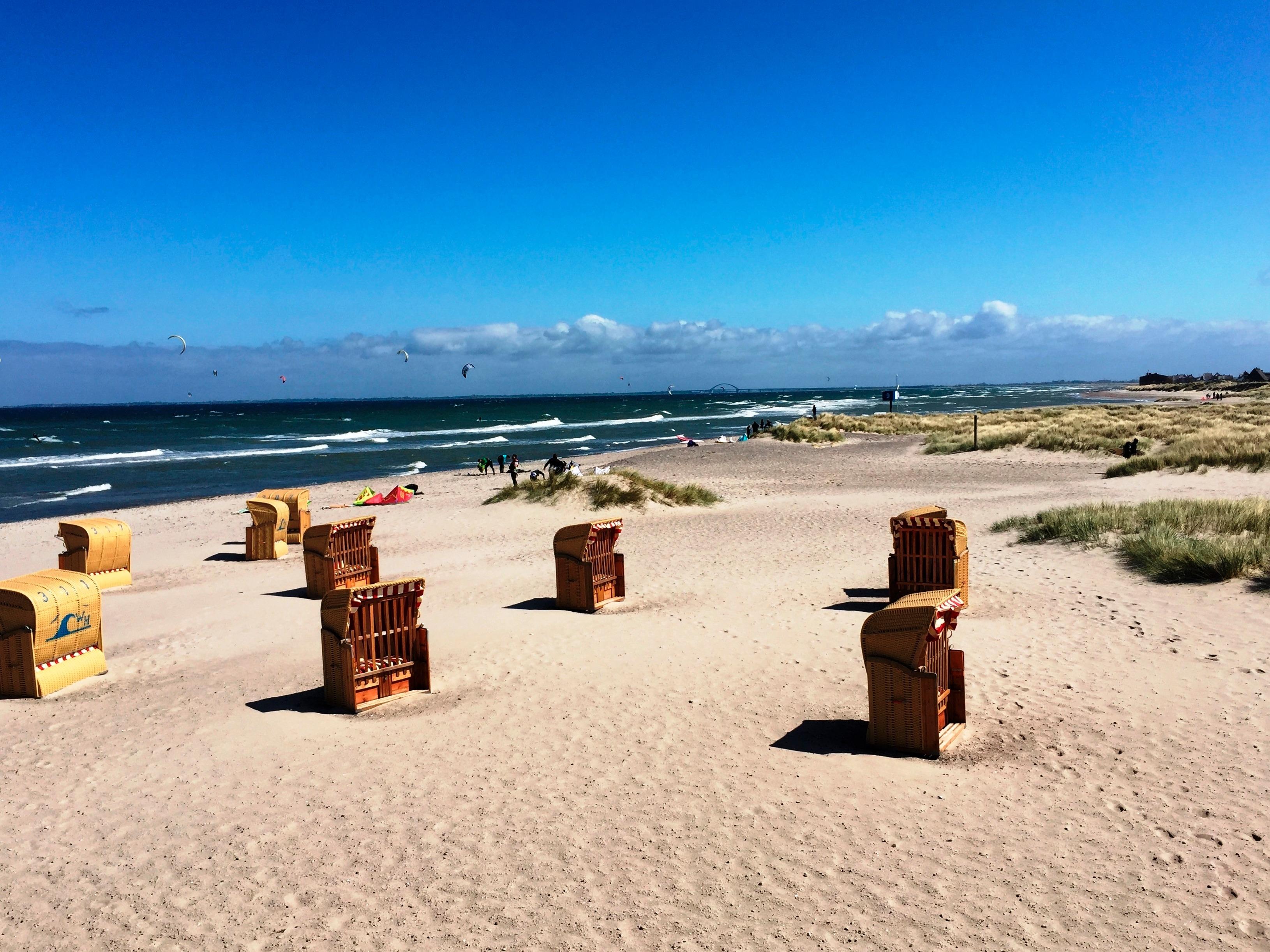 The light-flooded bedroom is furnished with a large, comfortable box spring bed that offering rest and recreation. In the morning, you will be woken by the sun, and you can enjoy the sunrise from the small southeast balcony that oversees the Baltic Sea, the marina, the nature reserve Graswarder and the Fehmarnsund-Bridge.