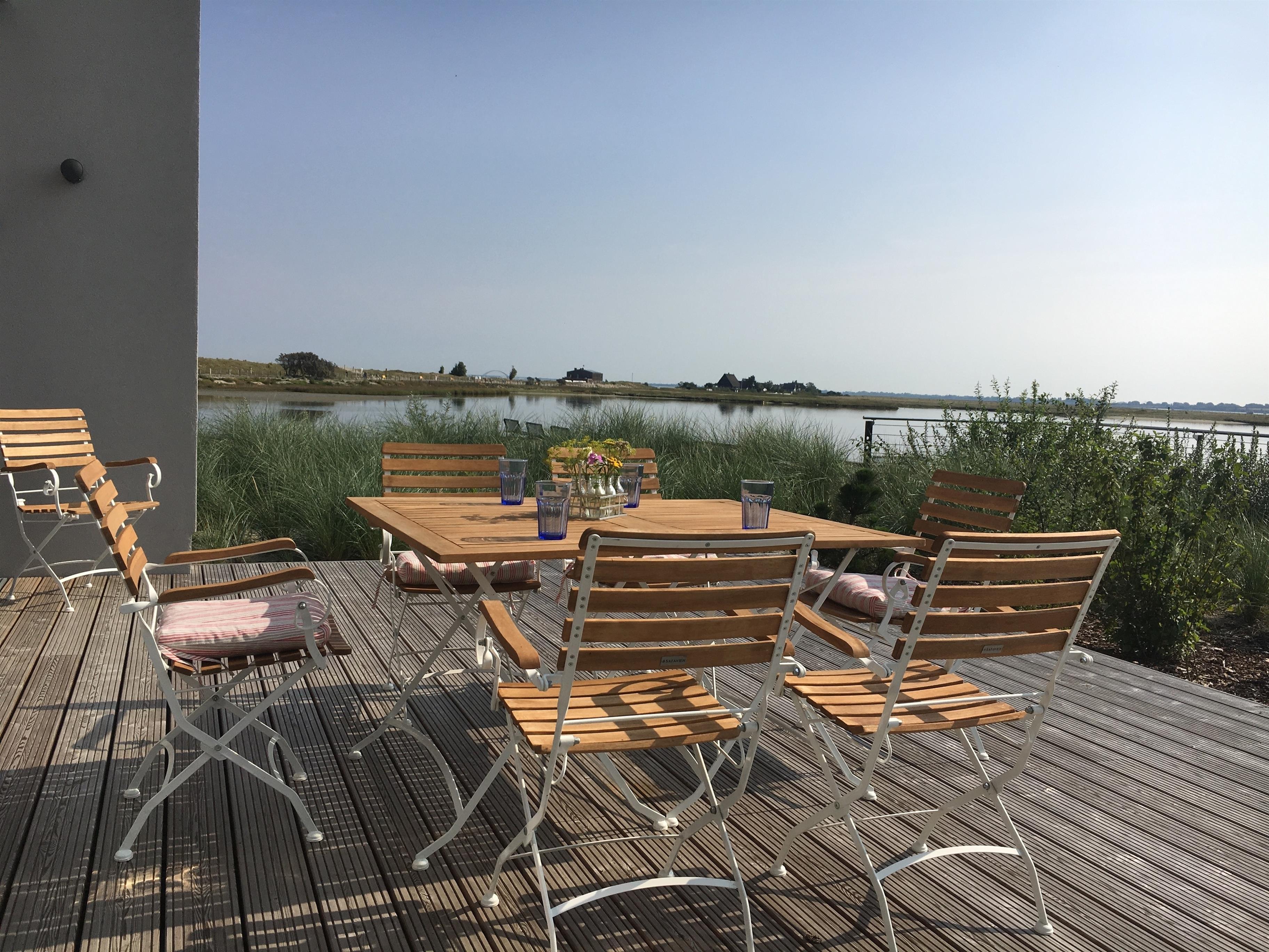Haus 46 liegt in traumhafter Lage am äußeren Rand der Ferienanlage direkt am Yachthafen mit Blick auf die Ostsee, den Binnensee, der Fehmarnsundbrücke und das Naturschutzgebiet.