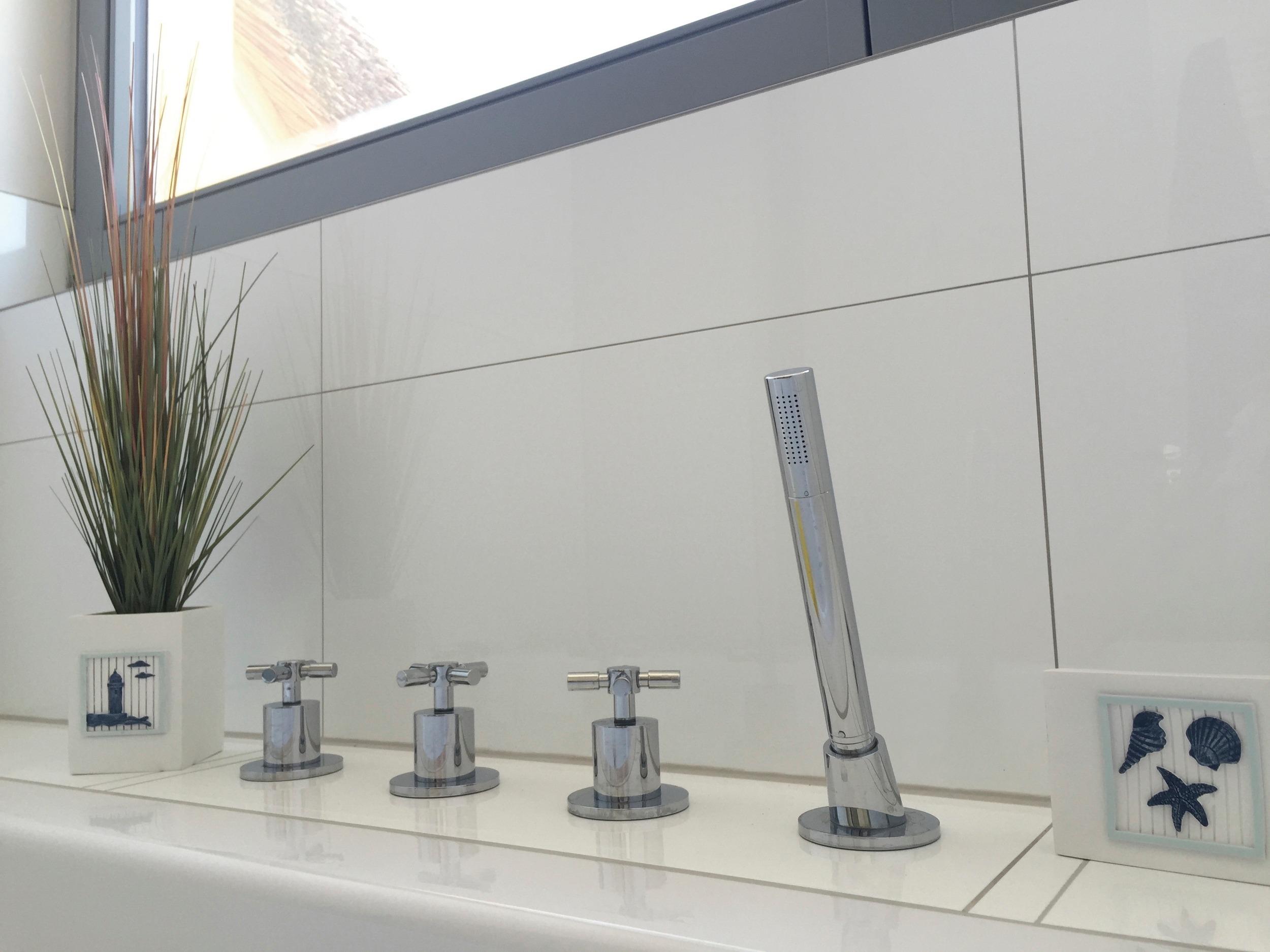 Das Badezimmer ist komfortabel mit Badewanne und ebenerdiger geräumiger Dusche ausgestattet. Hier steht Ihnen auch eine Wasch-/Tocknerkombination zur Verfügung.