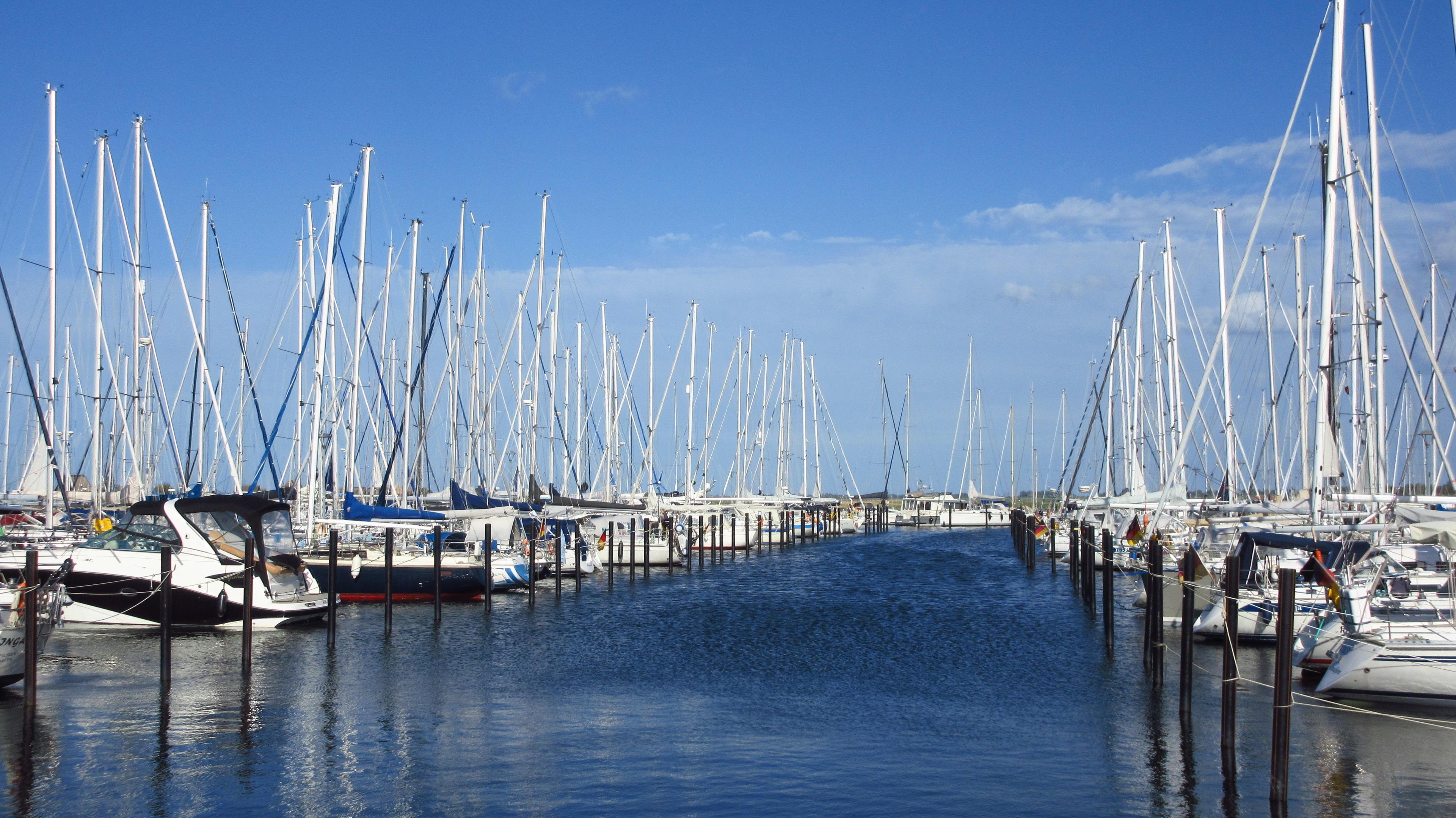 Vom Balkon der Schlafzimmer aus haben Sie einen herrlichen Blick über den Yachthafen, Graswarder (Naturschutzgebiet) und zur Ostsee.