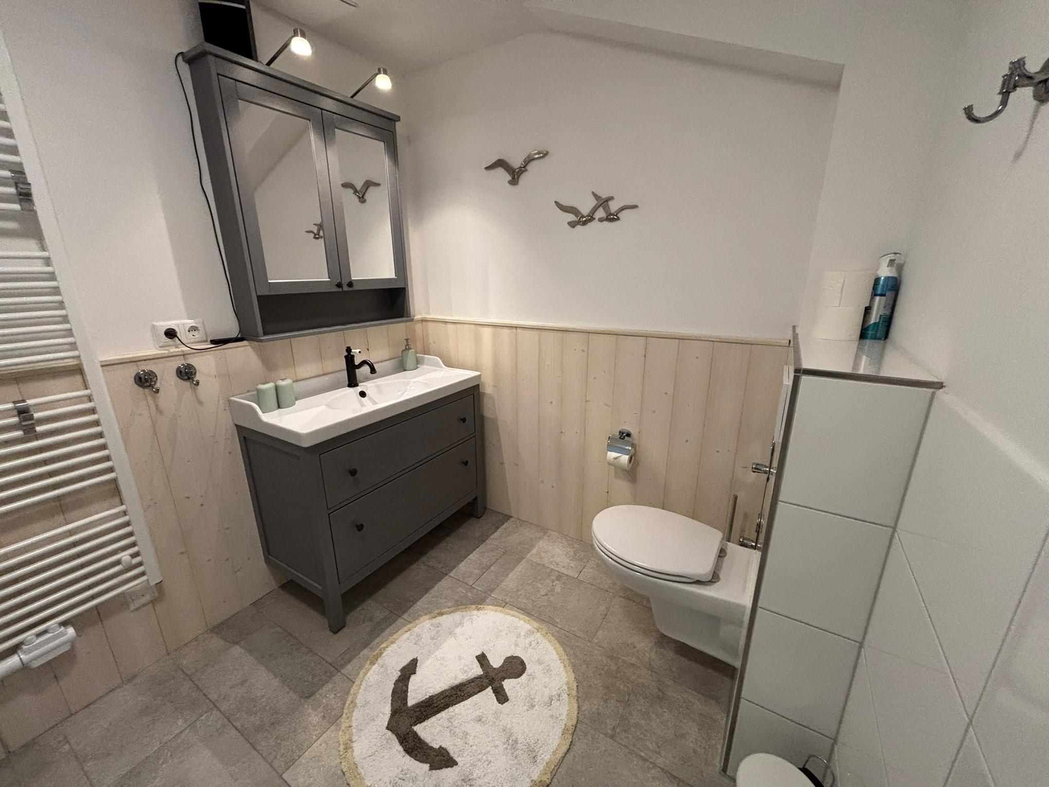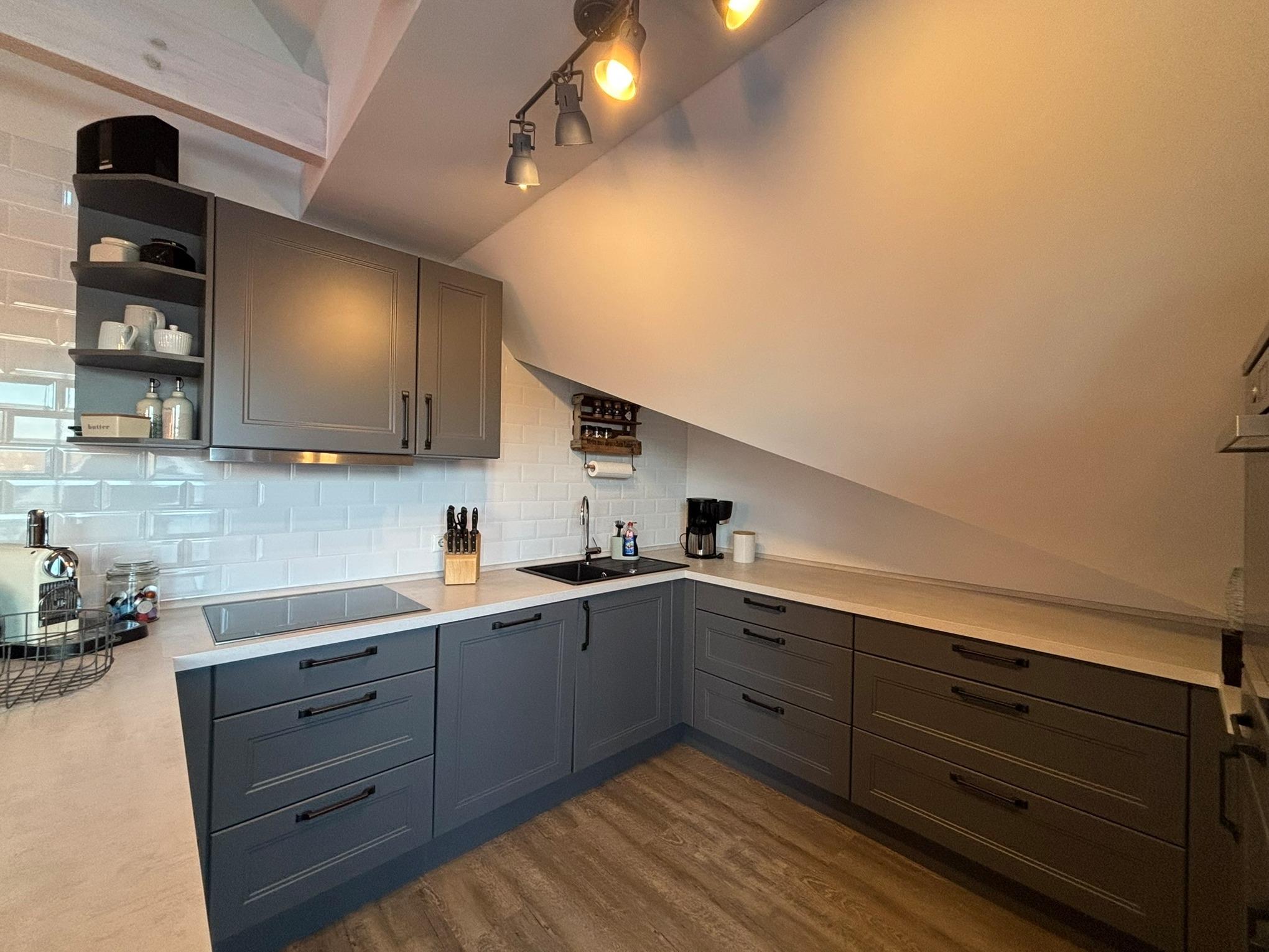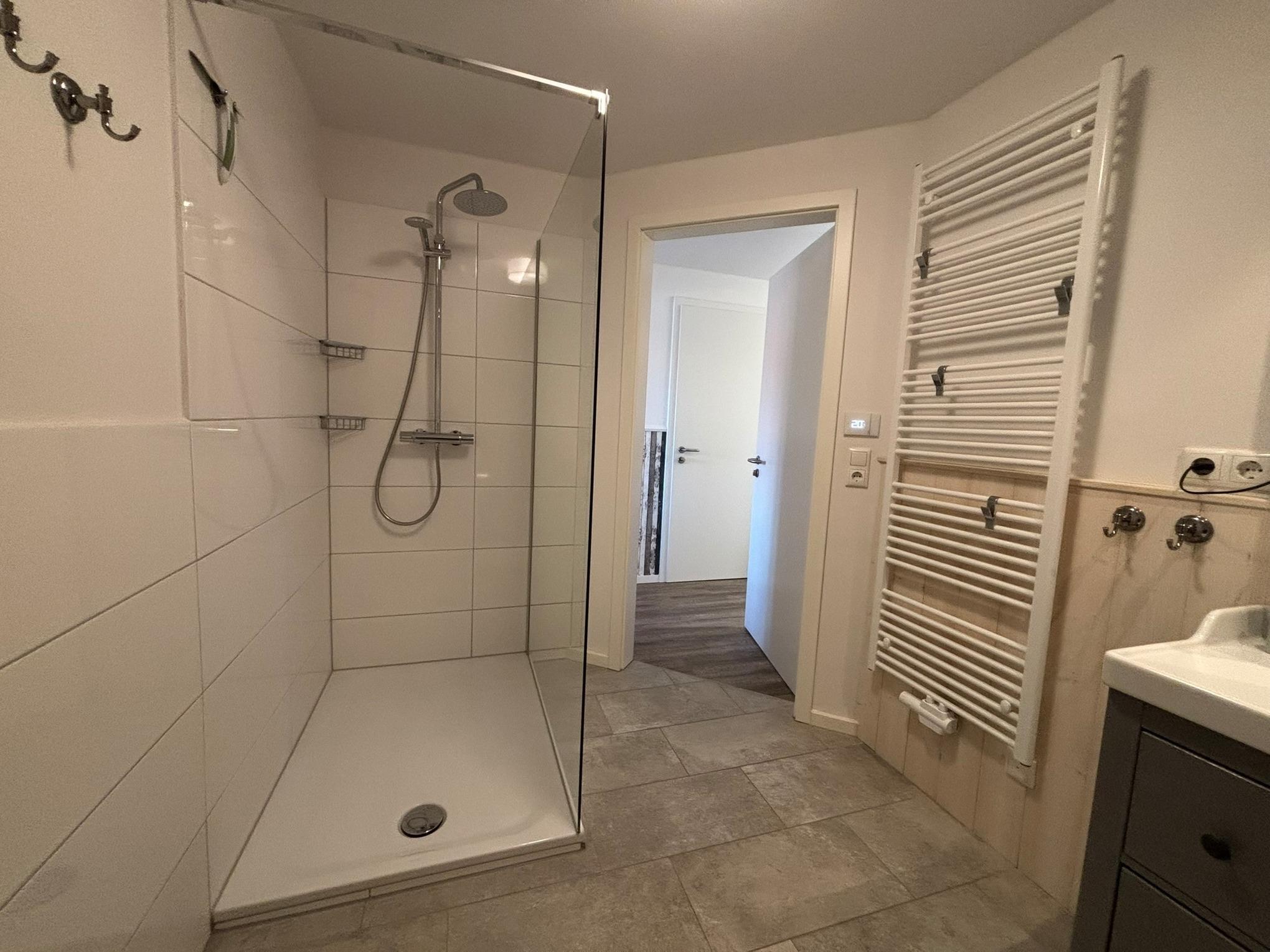 Das geräumige Bad ist funktional gestaltet, verfügt über eine Bodenebene Dusche und überzeugt mit seiner modernen Ausstattung. Die großzügige Küche lässt keine Wünsche offen und bietet genügend Raum für kulinarische Abenteuer sowie für gesellige Momente mit Familie und Freunden.