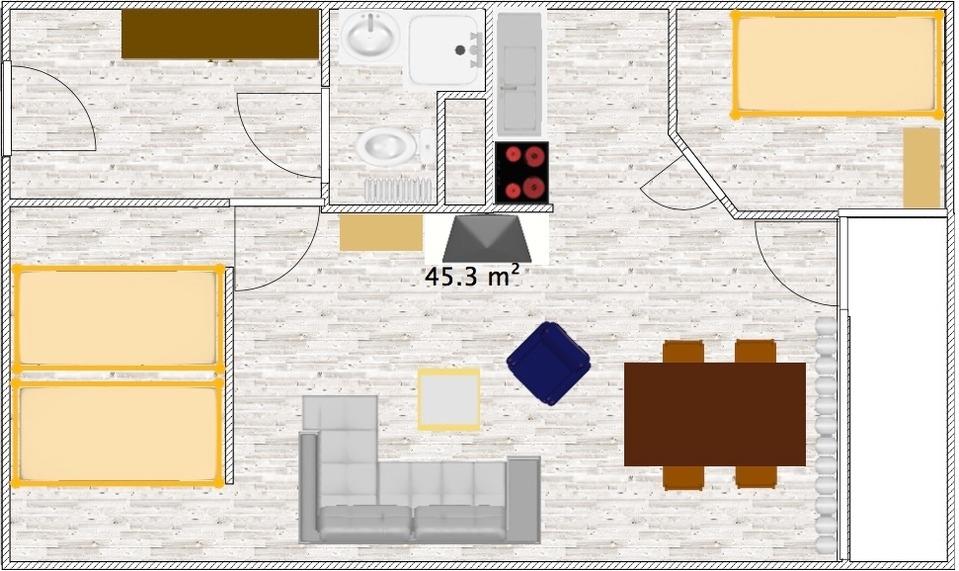 Die 1 ½ Zimmerwohnung besteht aus einem Ess-u. Sitzbereich mit einem neuen LCD-Fernseher (43°), Stereoanlage mit CD-Player, BlueRay-Player sowie kostenfreiem W-LAN.